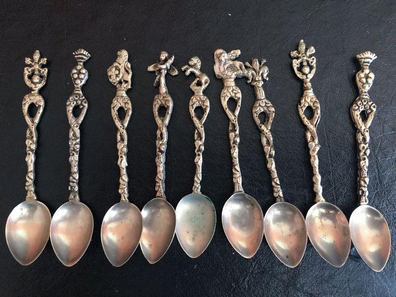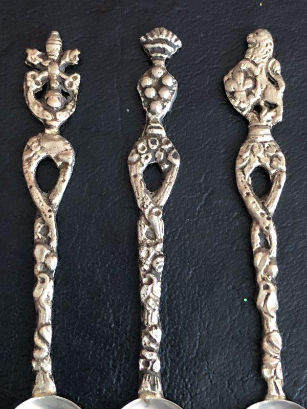 This is a unique set of Demitasse Silver Spoons made in Italy. Not marked sterling. Marked Italy. Please see the pictures for the ornate details!