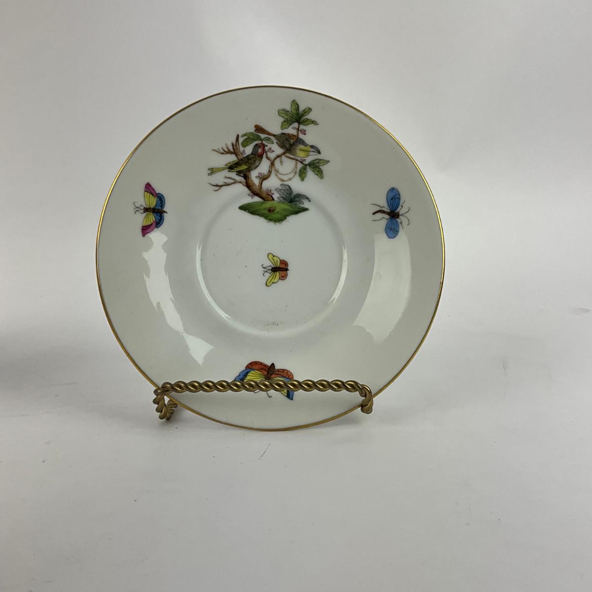 D278 Herend Rothschild Bird Small Teapot With Two Demitasse Cups With Matching Saucers