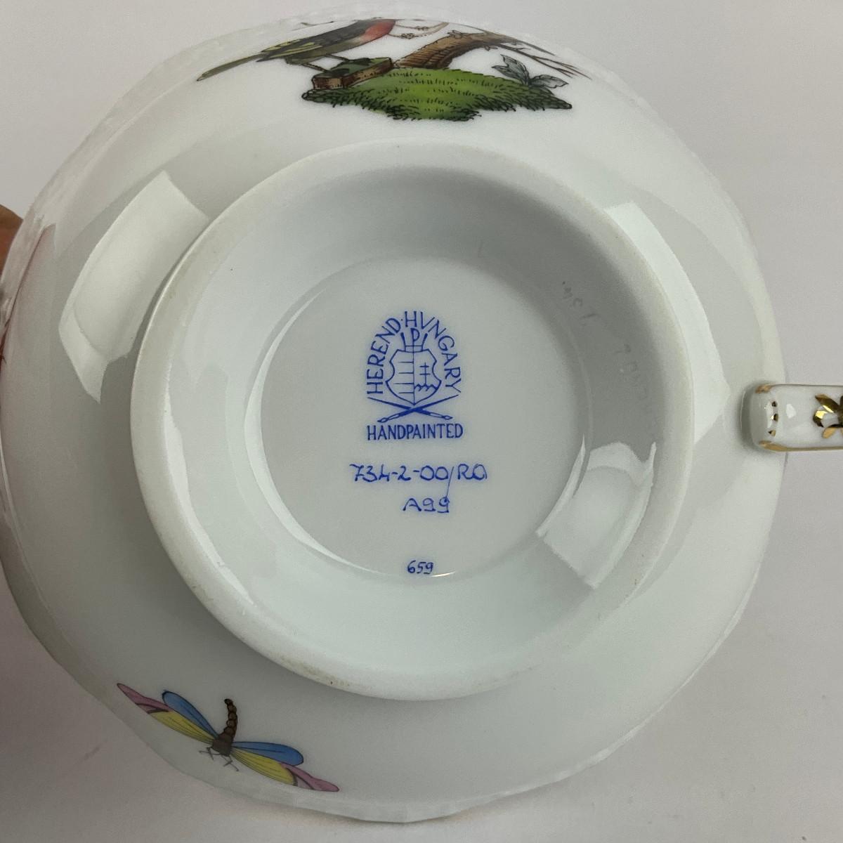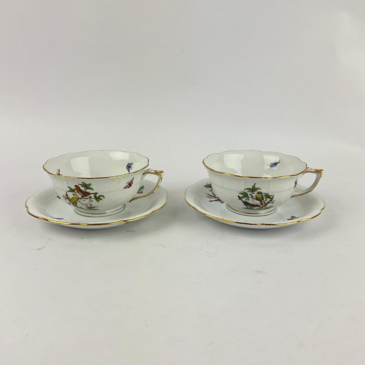 D279 Herend Rothschild Bird Four Teacups & Four Saucers