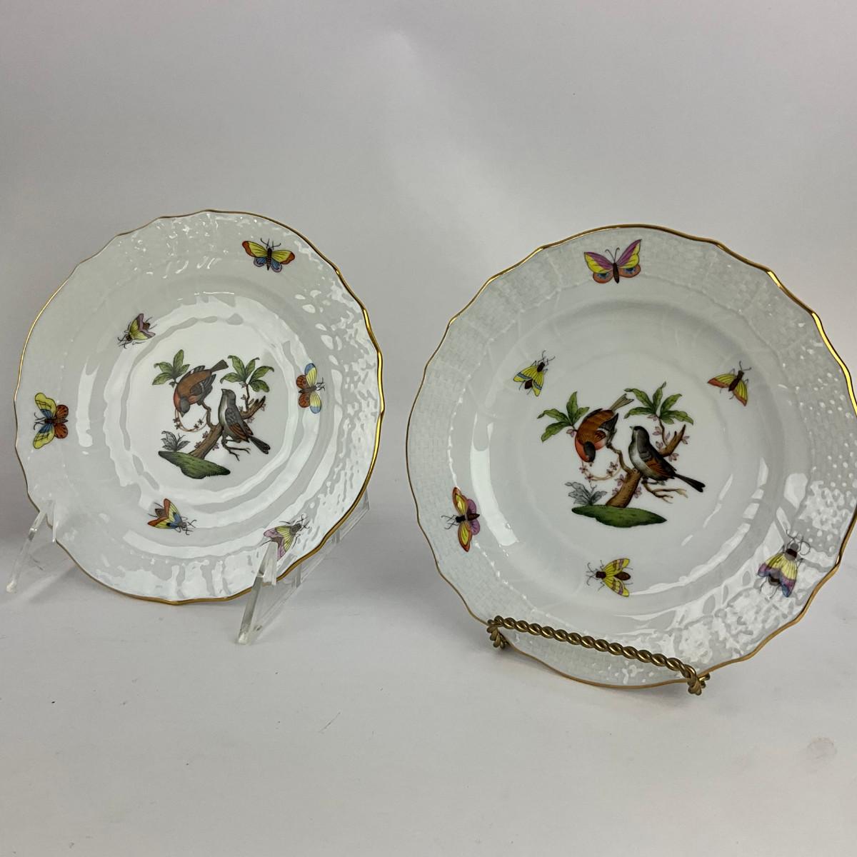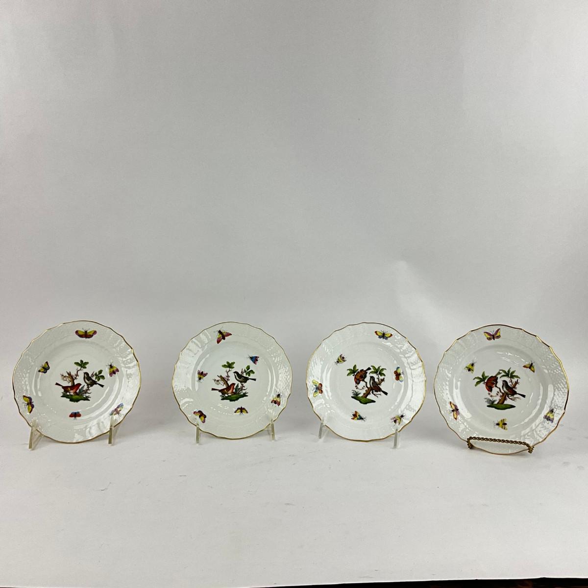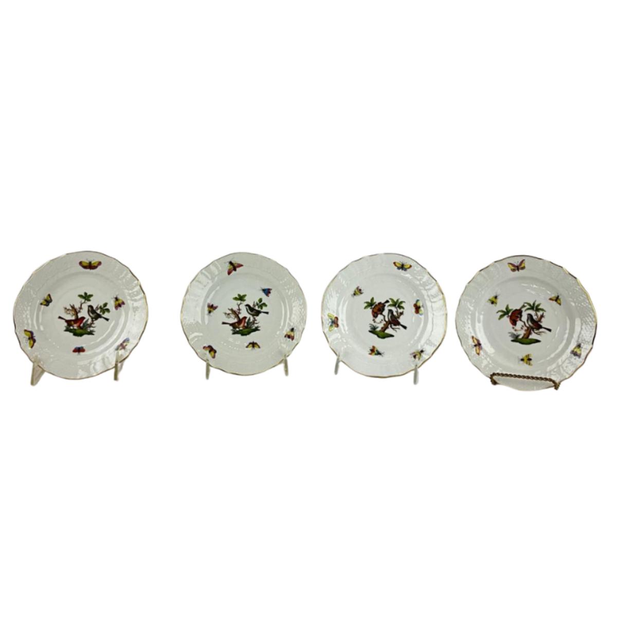 D287 Four Herend Rothschild Bird Bread & Butter Plates