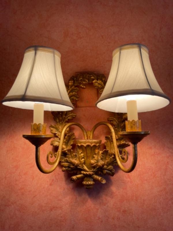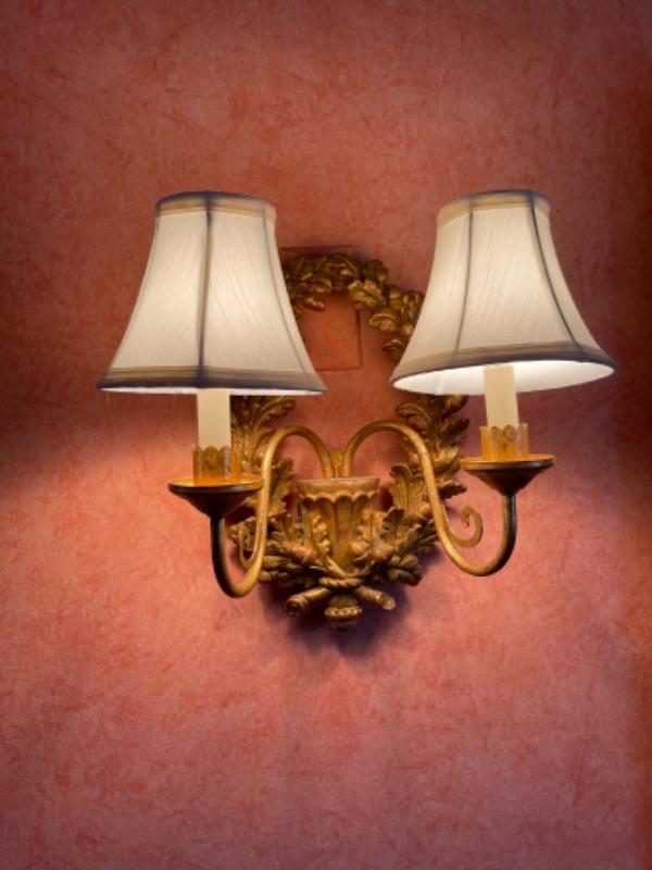 D294 Pair of Gold Acorn Wreath Double Electric Sconces