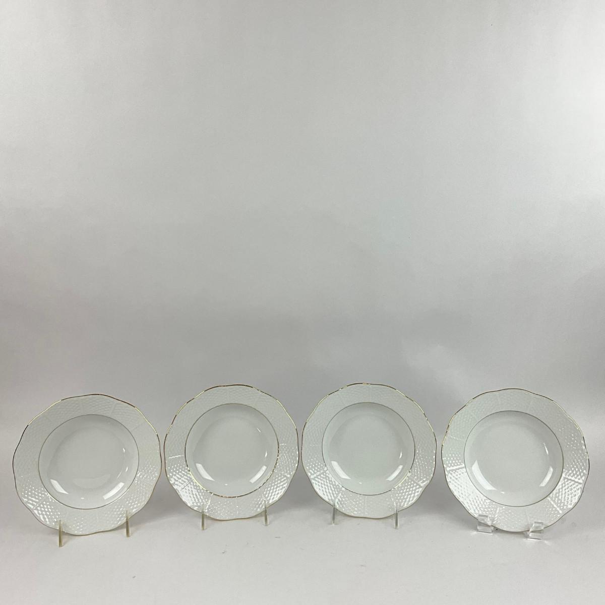D298 Set Of Four Herend Platinum White Edge Rim Soup Plates