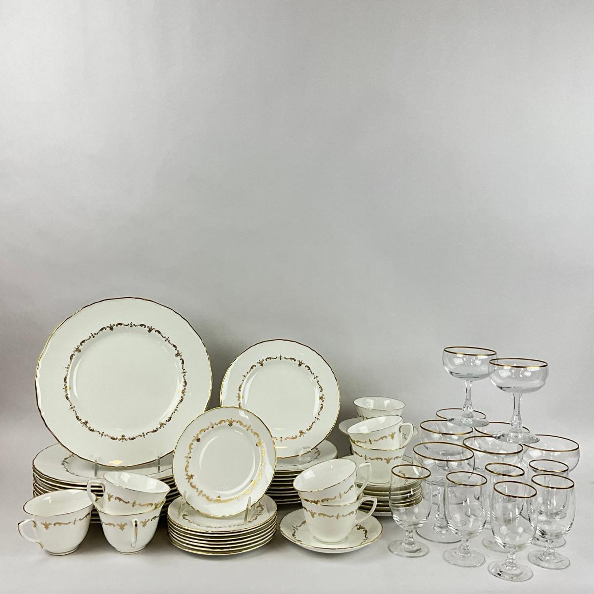 D302 46pc Set of Royal Worcester Bone China & 12pc set of Crystal Stemware