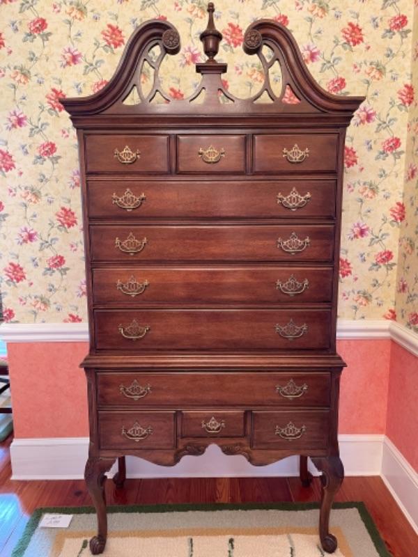 D306 Mahogany Queen Anne Style Highboy Chest by Davis Cabinet Co.