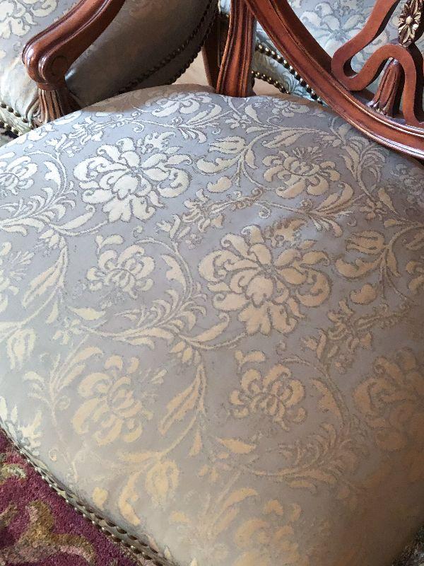 D36: Six Thomasville Dining Chairs Studded Silk Custom Gold Leaf