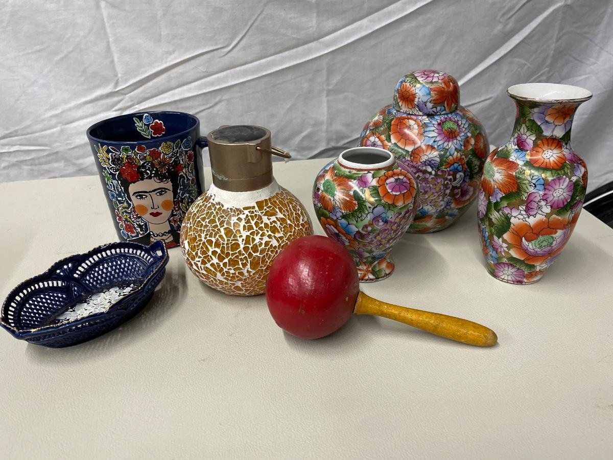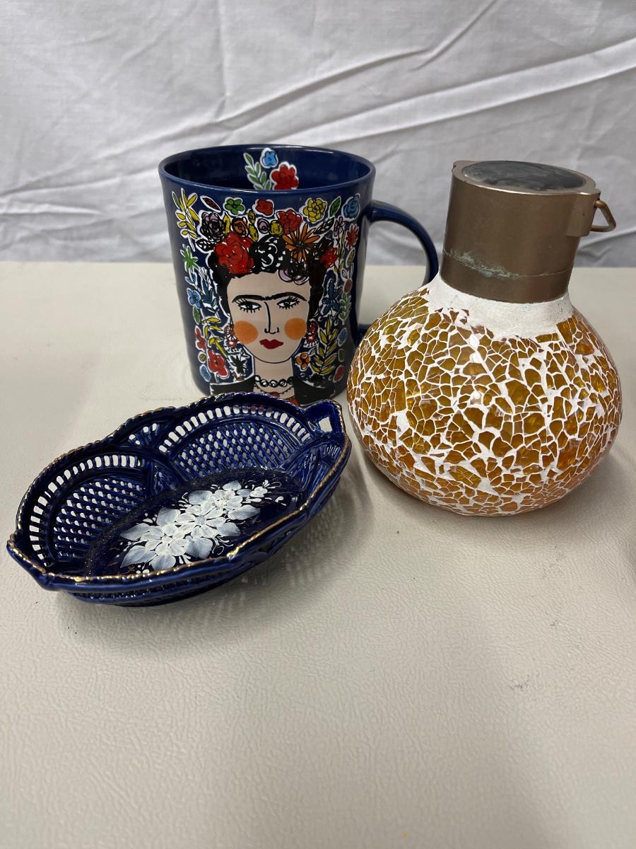 Large coffee mug, dish, solar light, maraca, colorful vase set