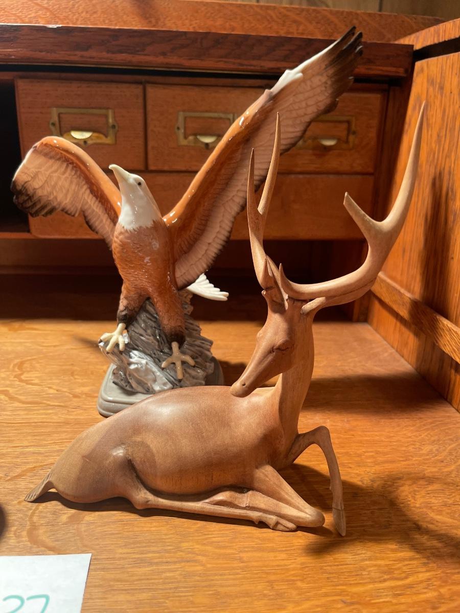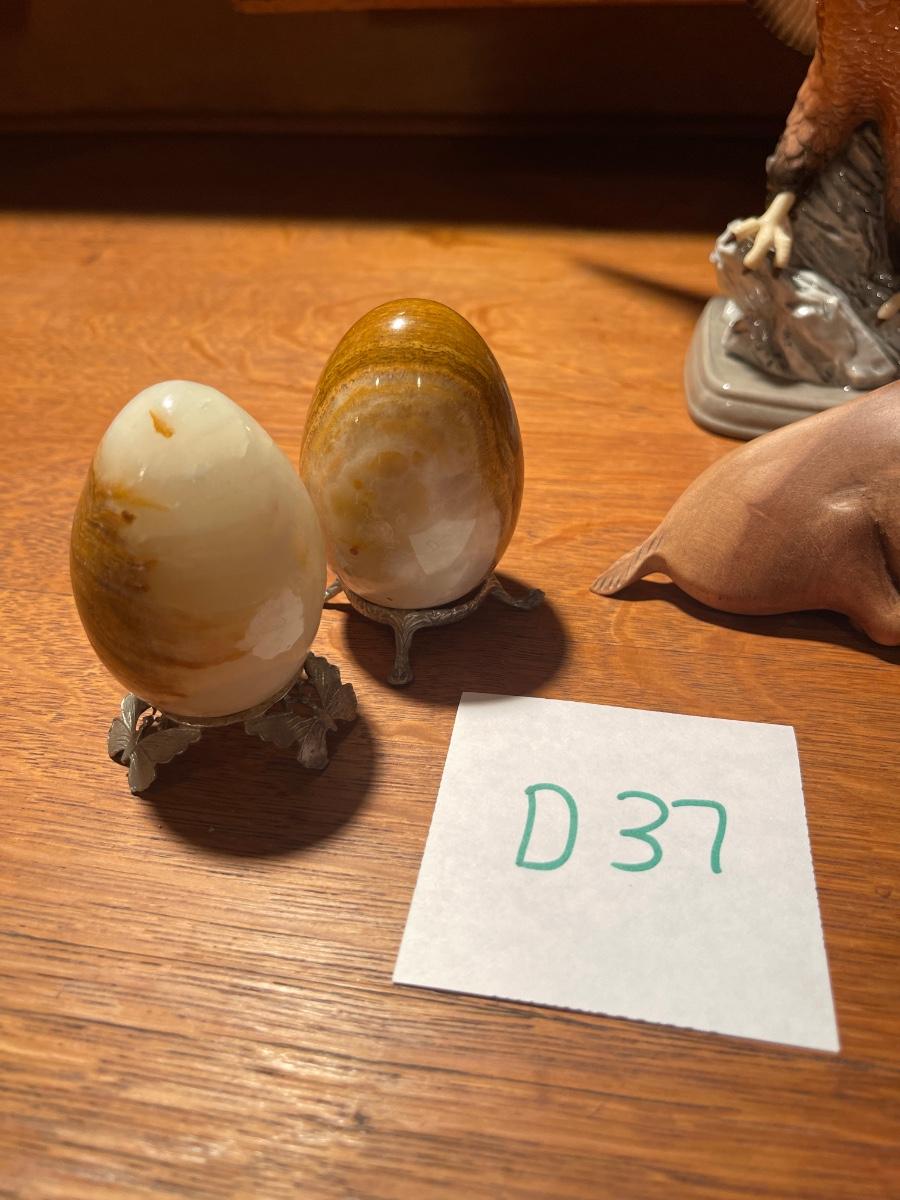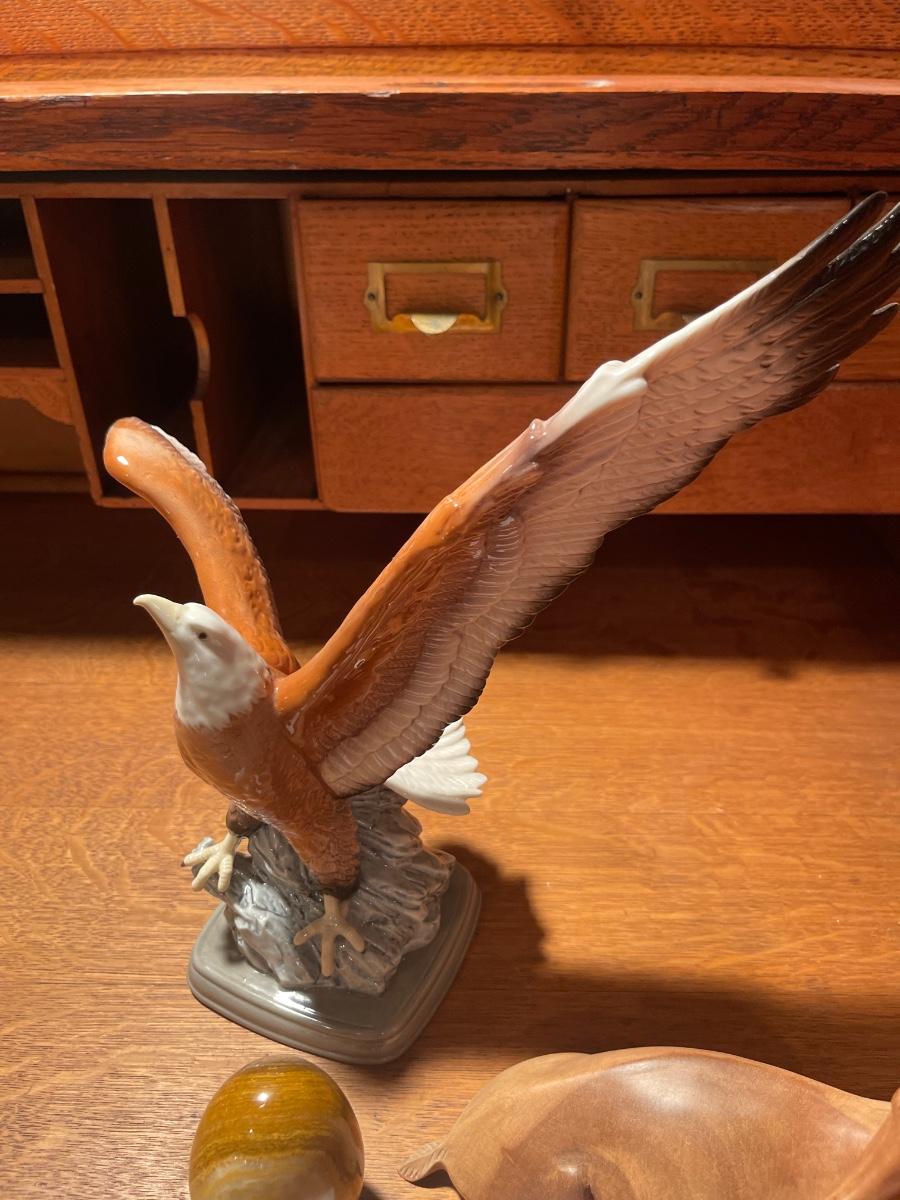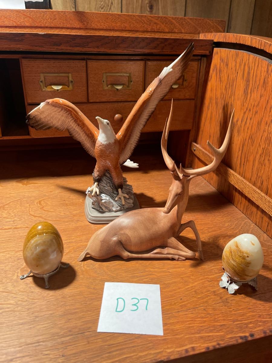 D37-Wood Carving, egg shaped stones and eagle figurine