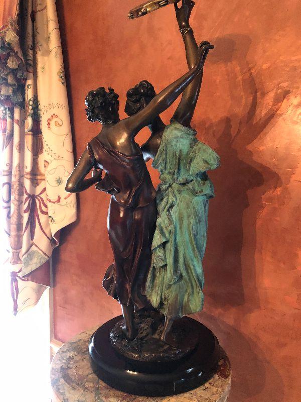 Vintage Bronze Statue made in the second half of the 20th century after original French Sculptor Clodion (1738-1814). This stature measures 27 inches tall by 9 inches wide at base! A rare beauty, bronze and heavy! Name-plate and marked on back, Clodion, En France Please see pics for condition.