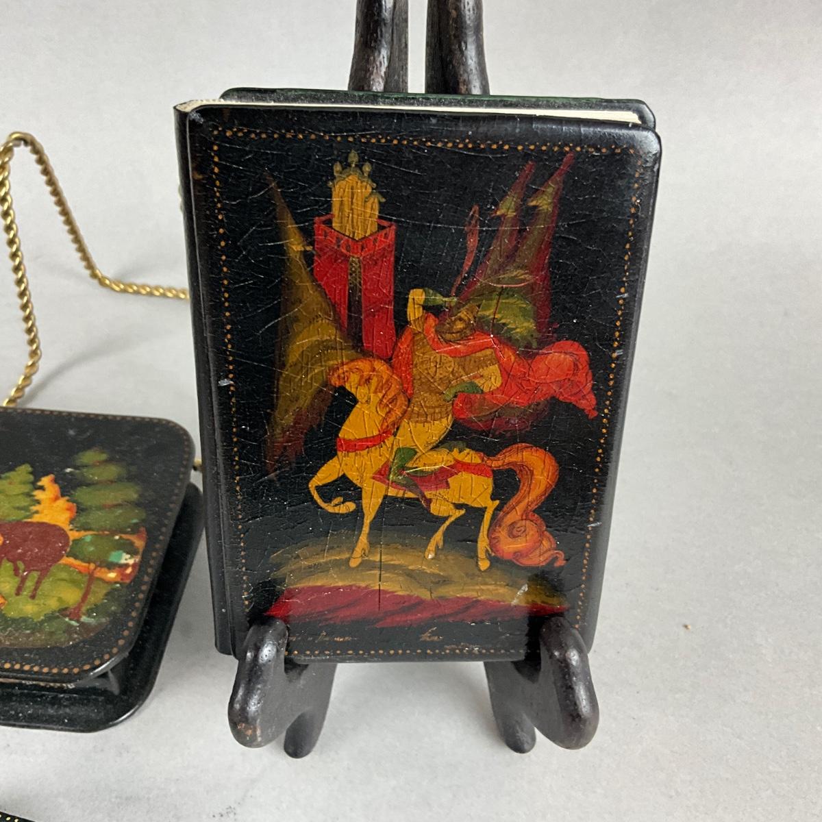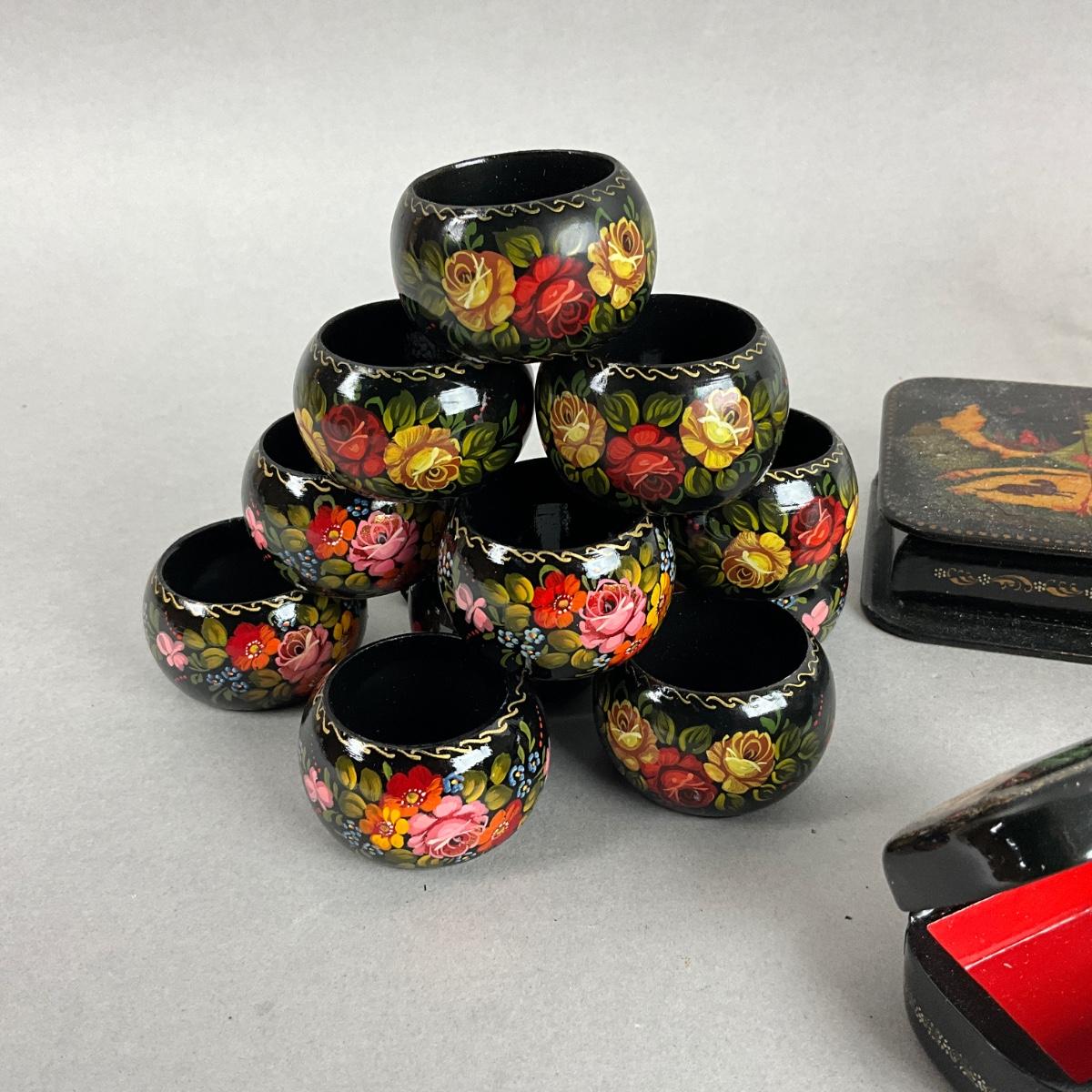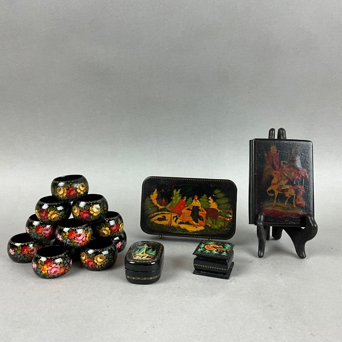D409 Handpainted Russian Boxes, A.S. Pushkin Book, Napkin Rings