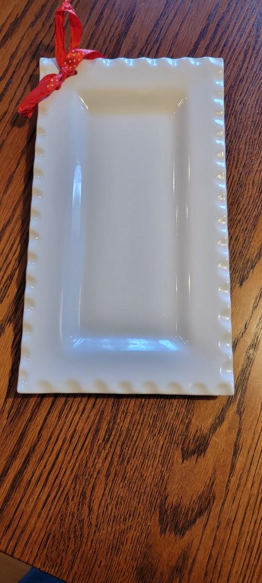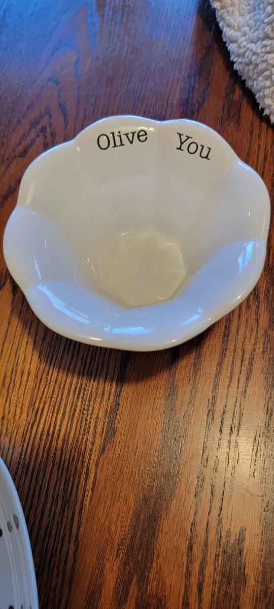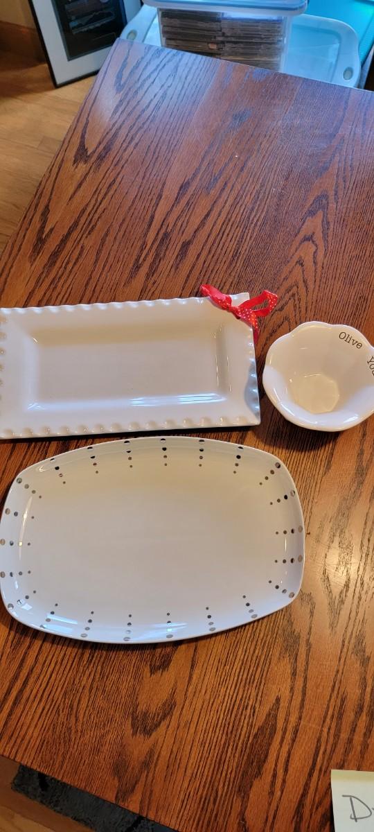 D-41 Two white serving trays and "olive you" white dish.