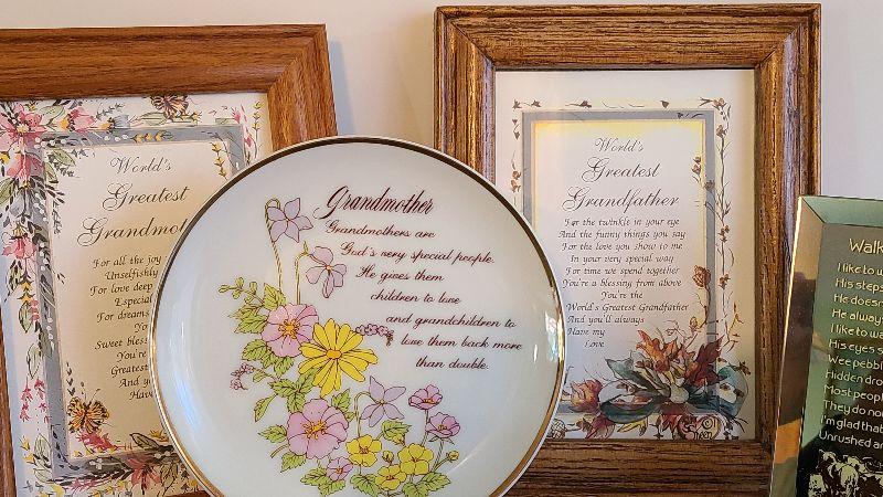 Bud Vase, Plaques and Décor. Please review all photos. First photo shows all that is in the lot, unless otherwhise noted. All items sold AS IS-WHERE IS. Please bring help for larger lots, and boxes or bags to remove your lots.