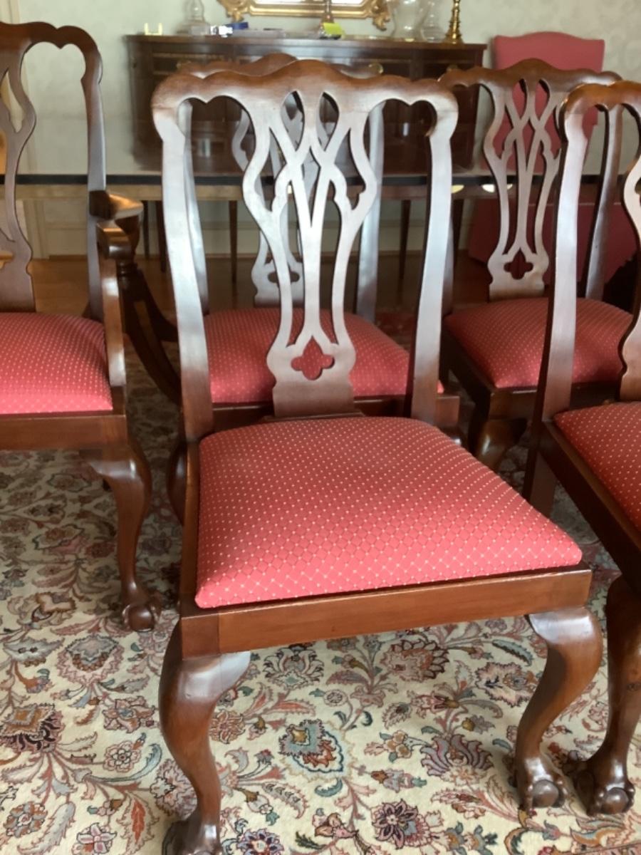 Set of Mahognay Chippendale Style Dining room Chairs with upholstered seats.