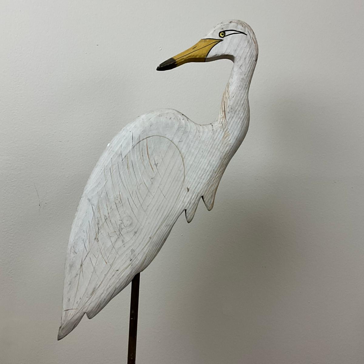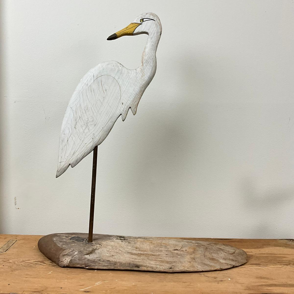 D506 Carved Crane on Driftwood by Rusty Harvey 1990