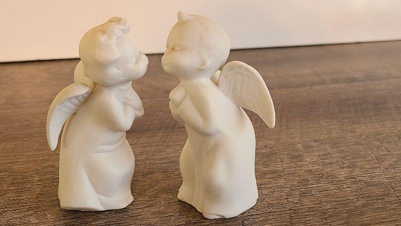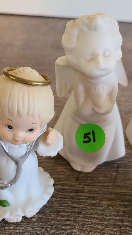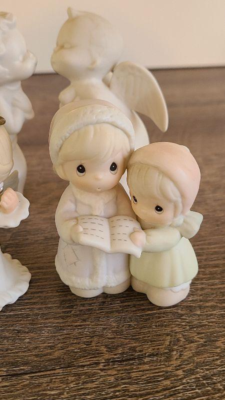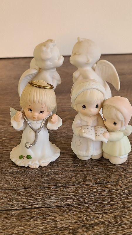 Precious, Enesco Bisque Figurines. Please review all photos. First photo shows all that is in the lot, unless otherwhise noted. All items sold AS IS-WHERE IS. Please bring help for larger lots, and boxes or bags to remove your lots.