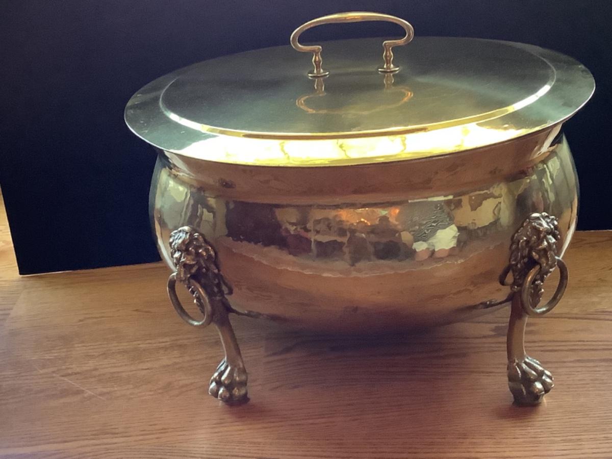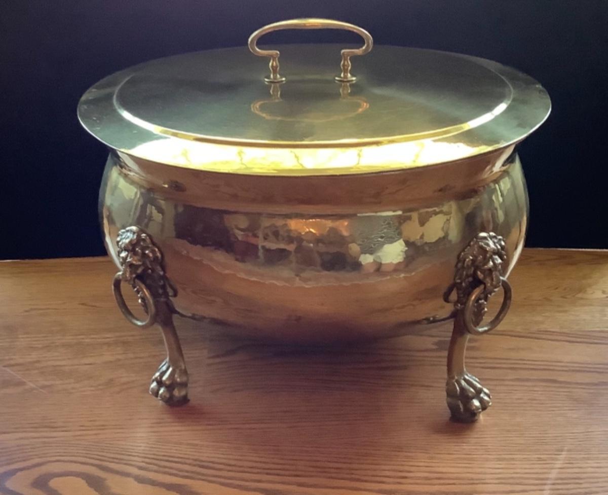 D513 Large George II Style Brass Oval Wine Cooler with Lid