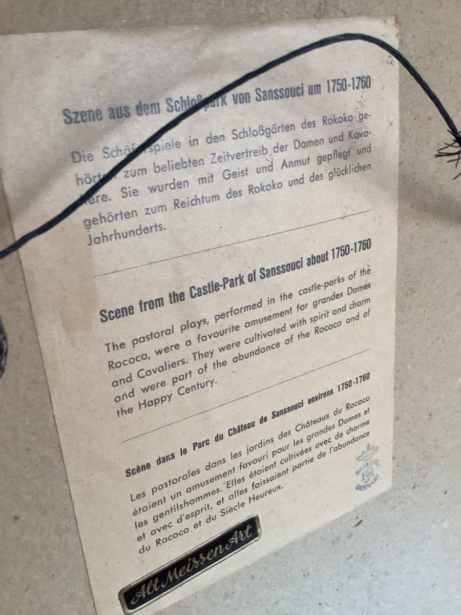 Pair of Meissen Porcelain Relief Plaques of the scene from the Castle-Park of Sanssouci , measuring 11.25” wide x 13.75” high