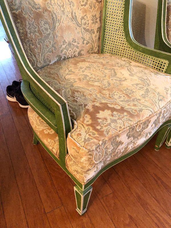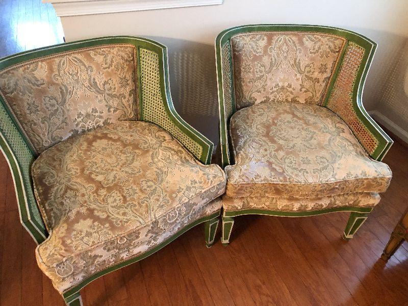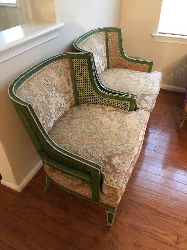D52: Pair of Vintage Caned Armed Occassional Chairs