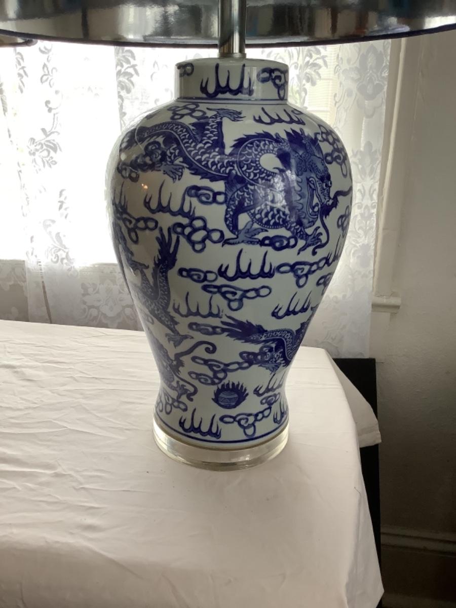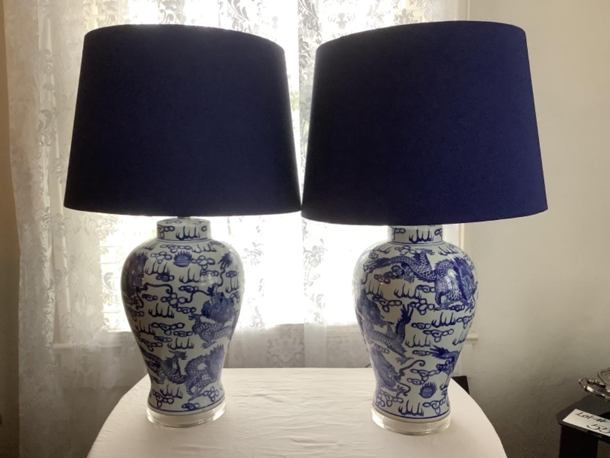 D576 Pair of Blue and White Chinese Pottery Lamps