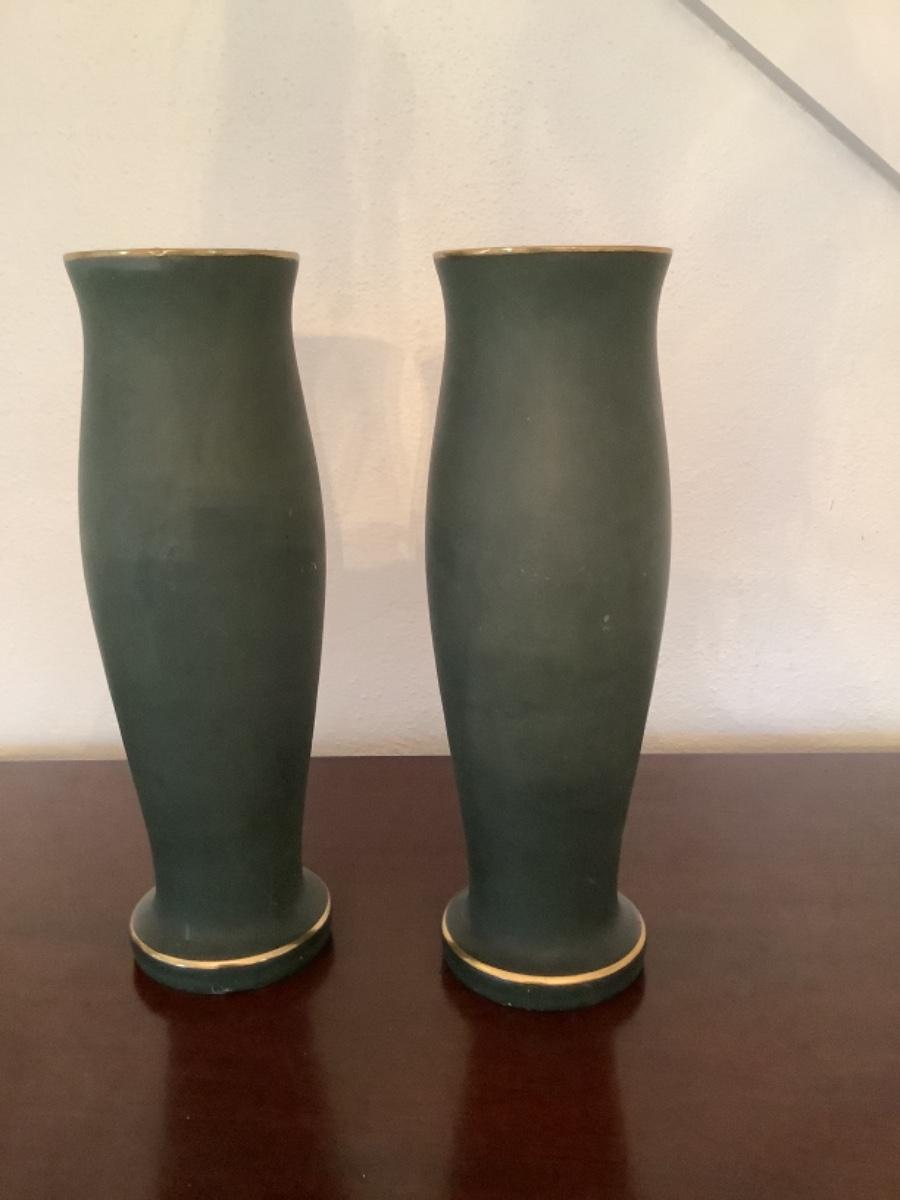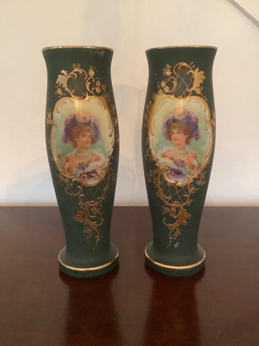 D589 Antique Handpainted Portrait Bristol Glass Vases