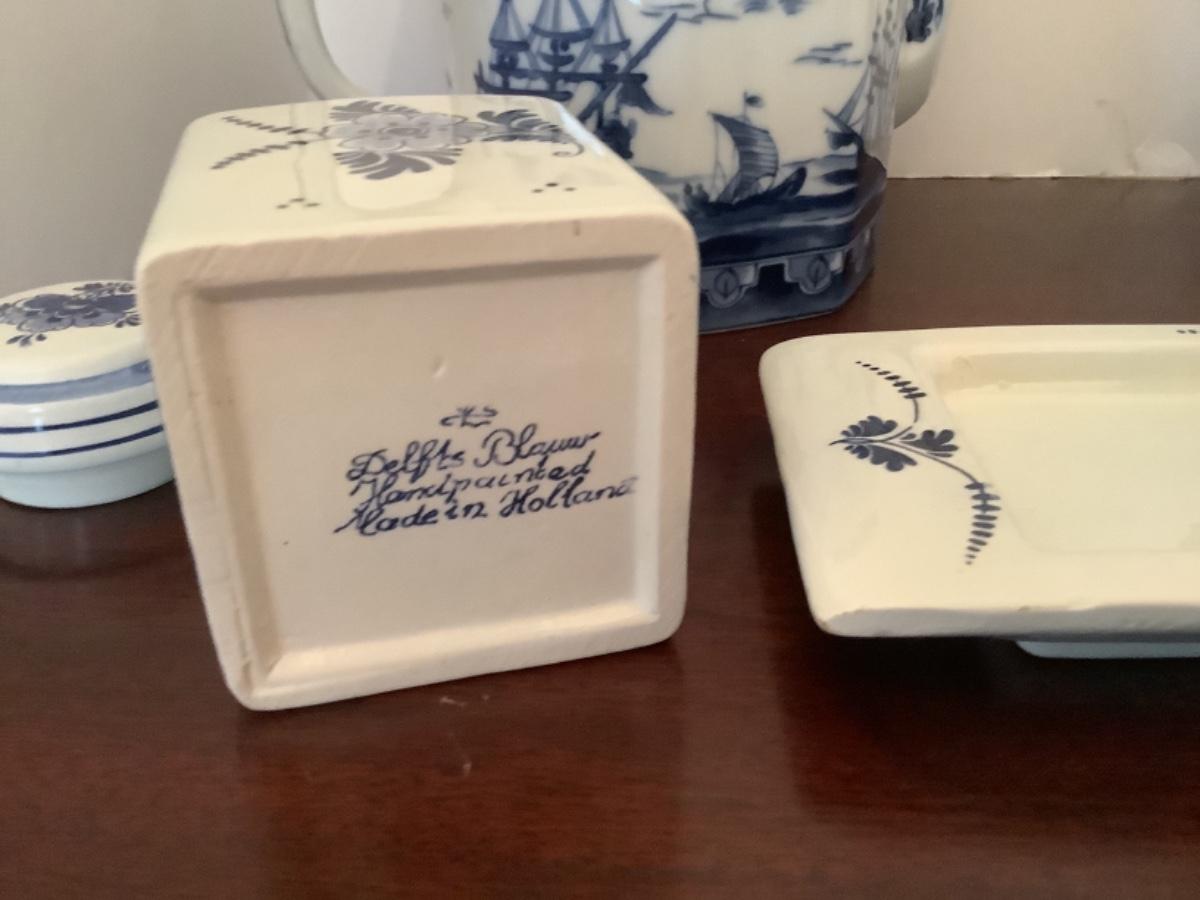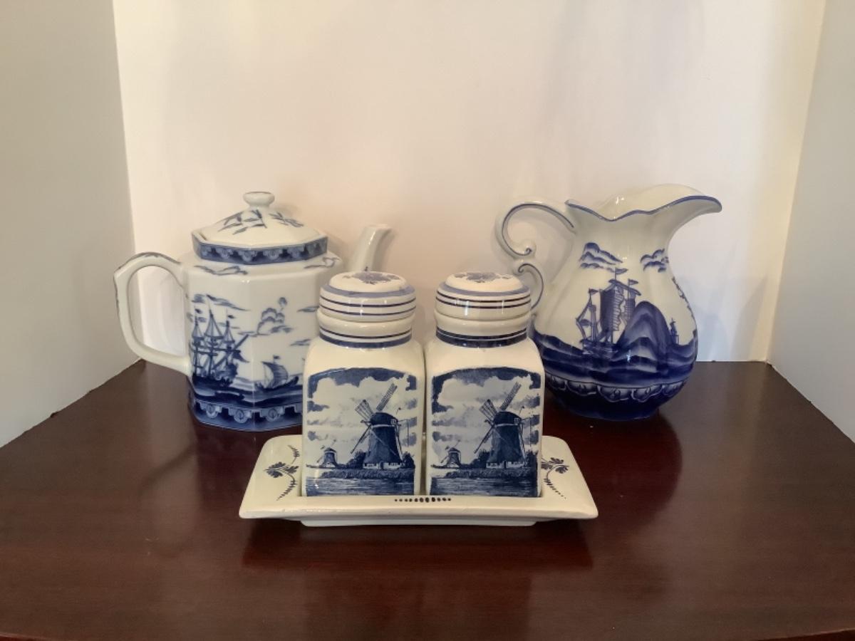 D592 Delft Spice Jars with Pottery Teapot and Water Pitcher