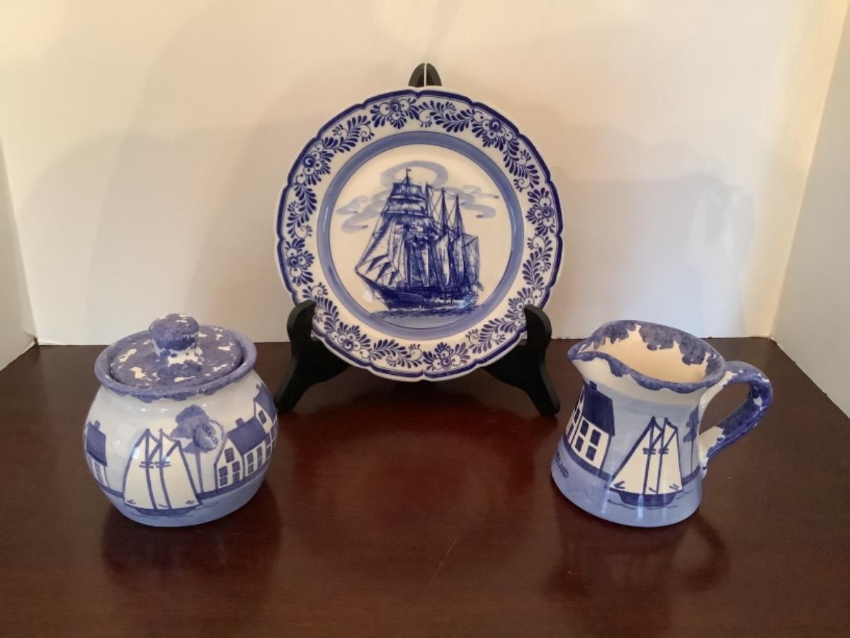 D594 Oxford Cream & Sugar Pottery by SHARD with Royal Delft Plate