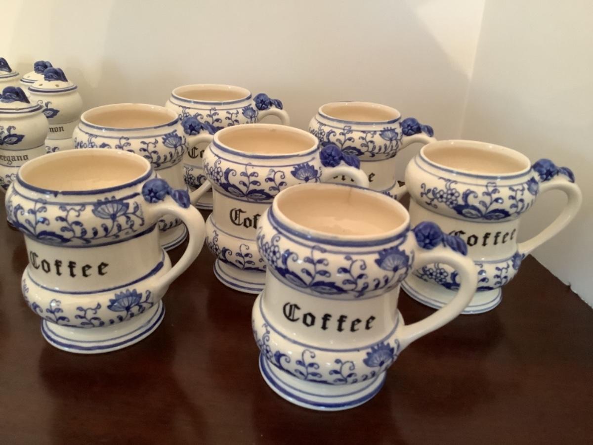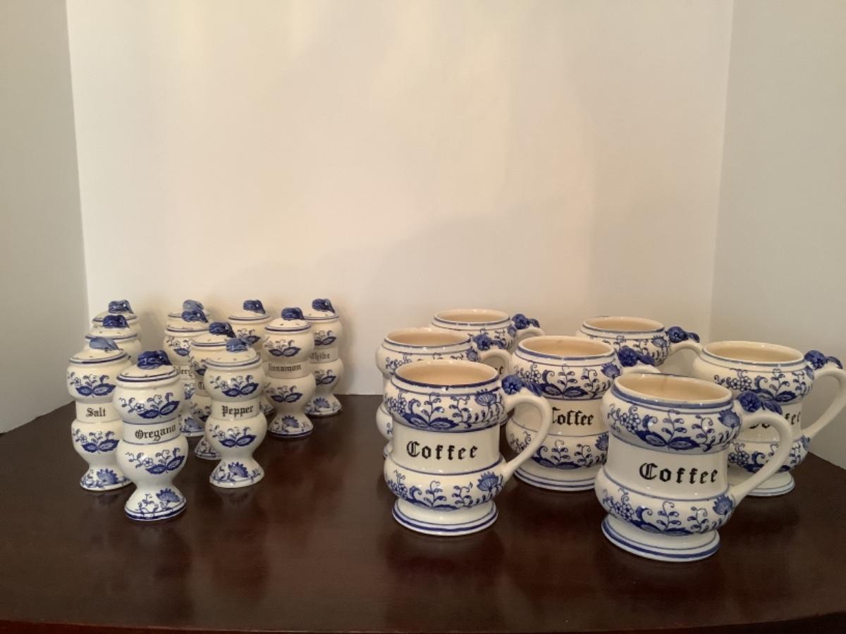 D595 Blue Onion Spice Jars & Coffee Mugs