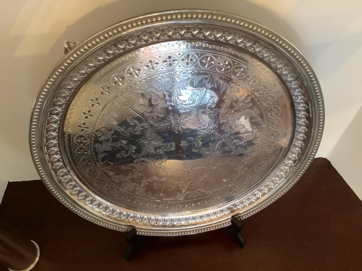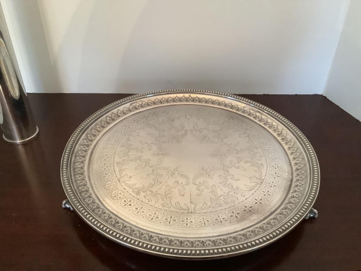 D598 Antique 1860 Benetfink & Co. Cheapside London Footed Silverplated Tray