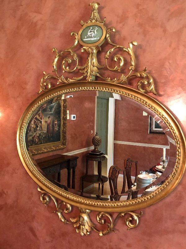 D6: Gold Gilt Ornate Oval Mirror!