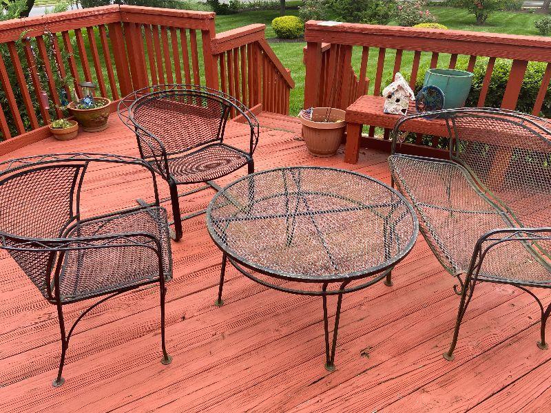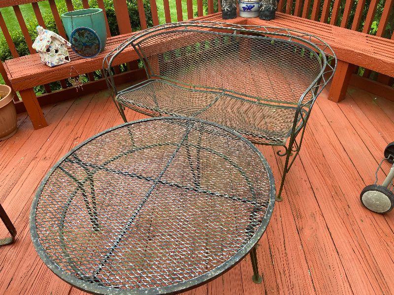 This is very nice, could be left as is for vintage rustic look, or painted to make fresh and new. Comes with a rocker, regular chair, chaise, and table. Please see all pics for what is included in this lot, the condition of the items in the lot, and sizes of items if measurements taken. Thank you for looking and have fun bidding.
