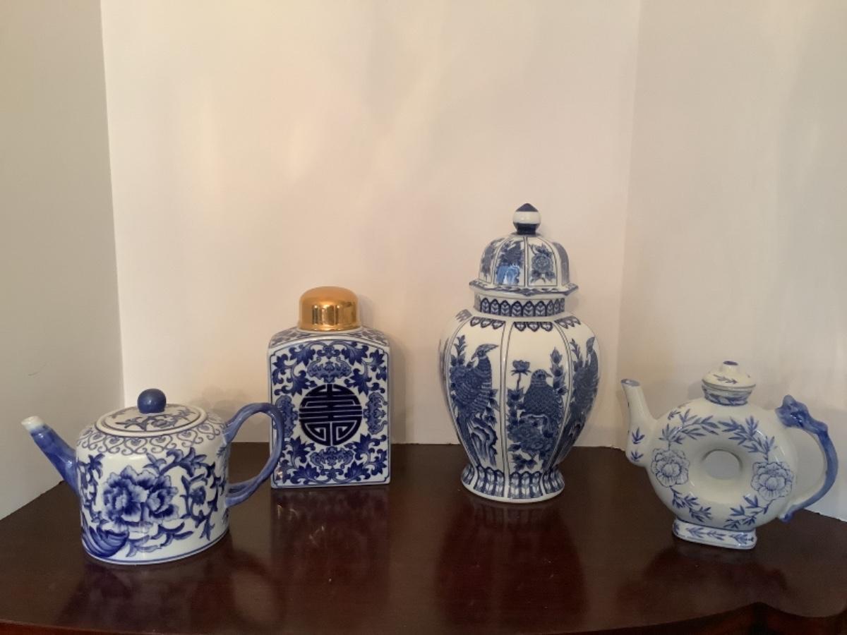 D606 Blue and White Chinese Design, Pottery Hame Decor Lot