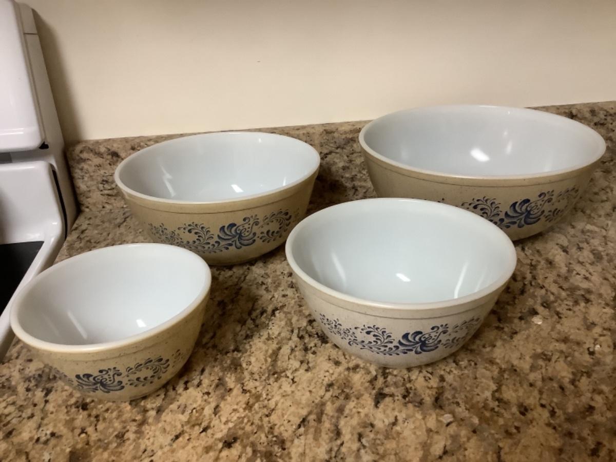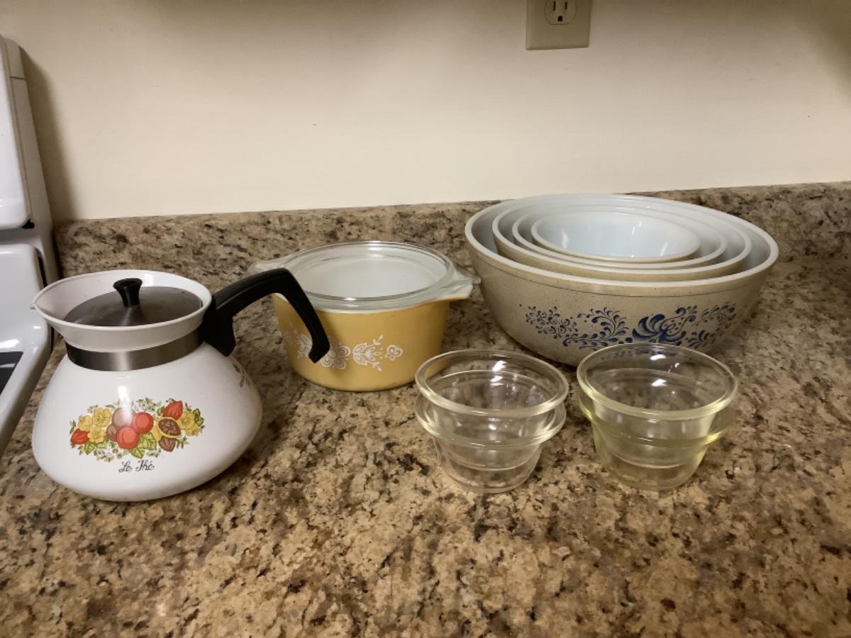 D606 Set of 4 Vintage Pyrex Mixing Bowls Corningware Enamel Carafe Pyrex Casserole