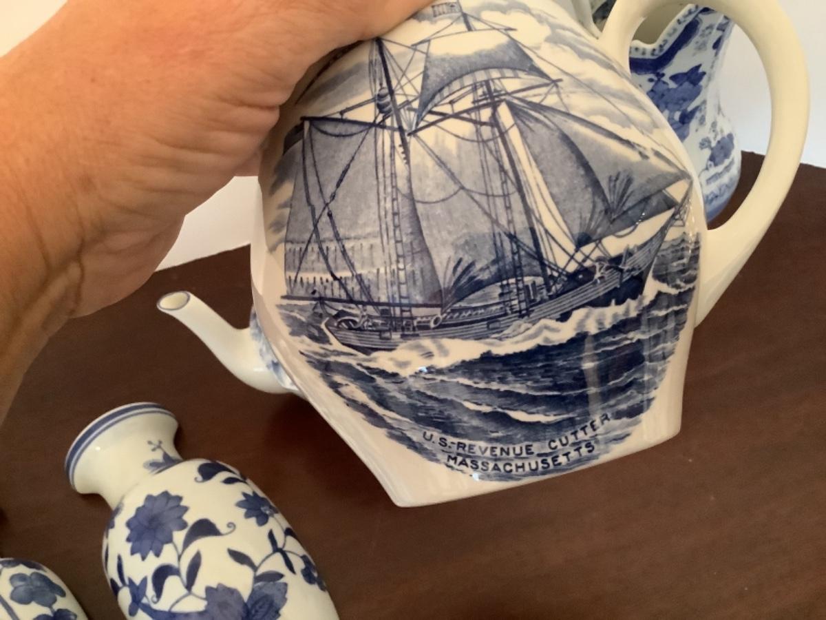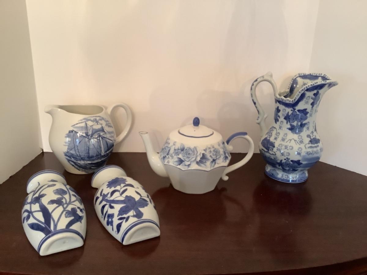 Pitchers, Teapot, 2- Wall pockets, Staffordshire , Alfred meakins ship pitcher