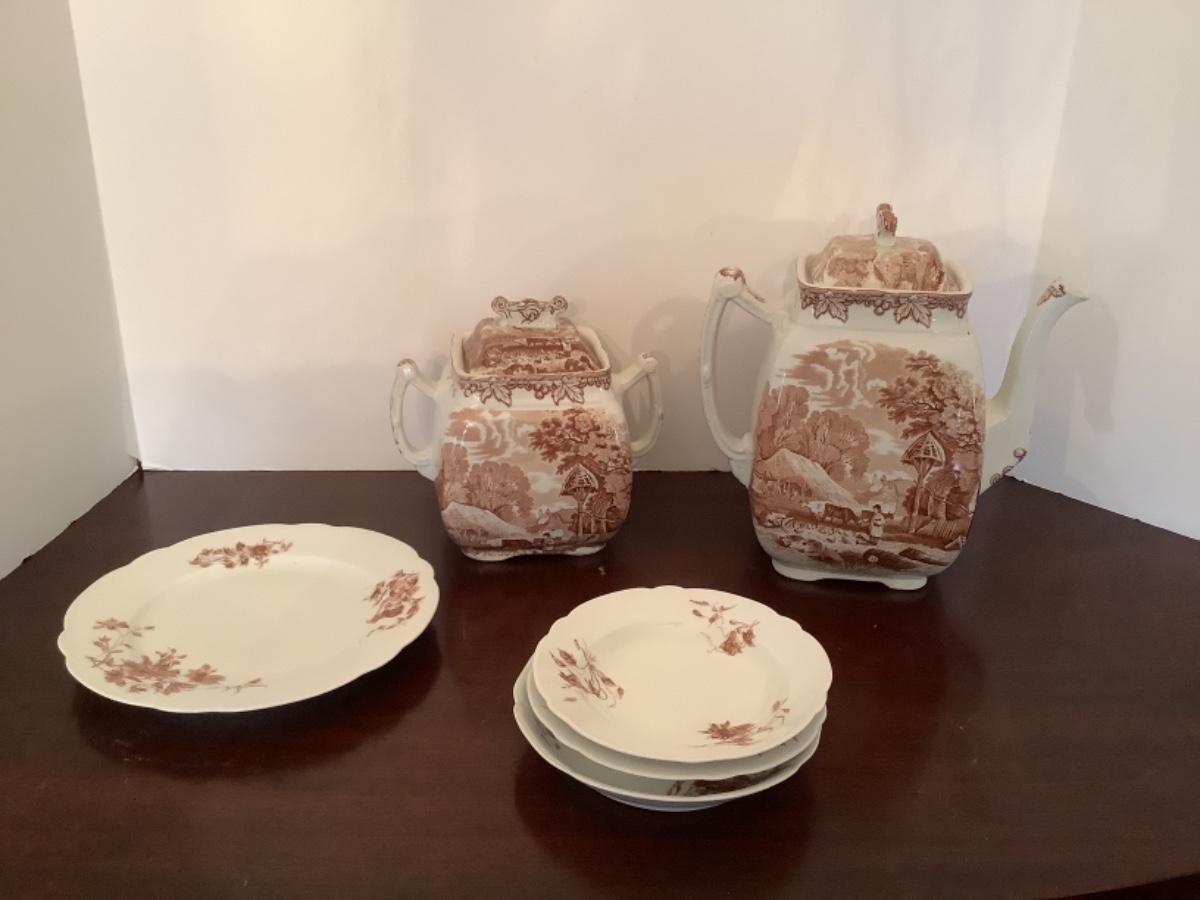 Coffee pot , covered sugar, 3 fruit bowls, 1 plate by Leonard Austria