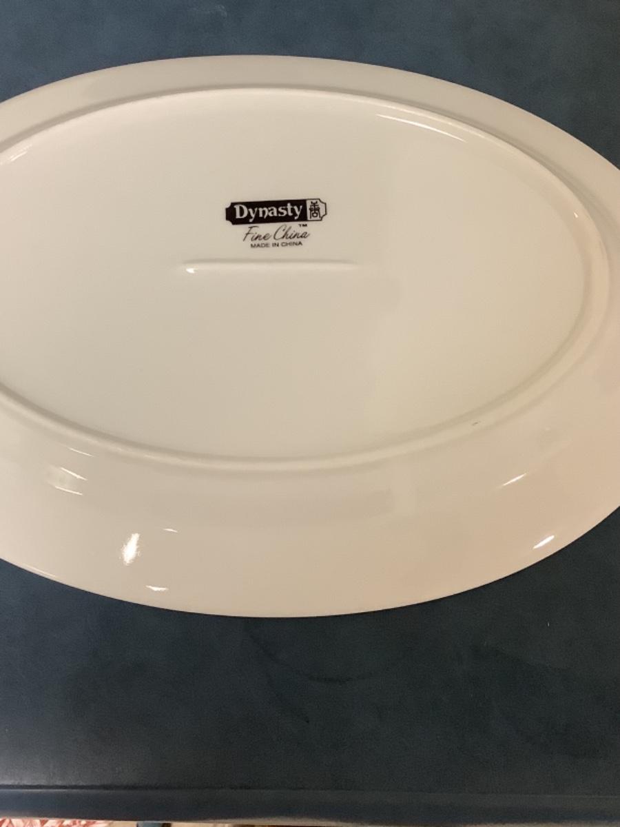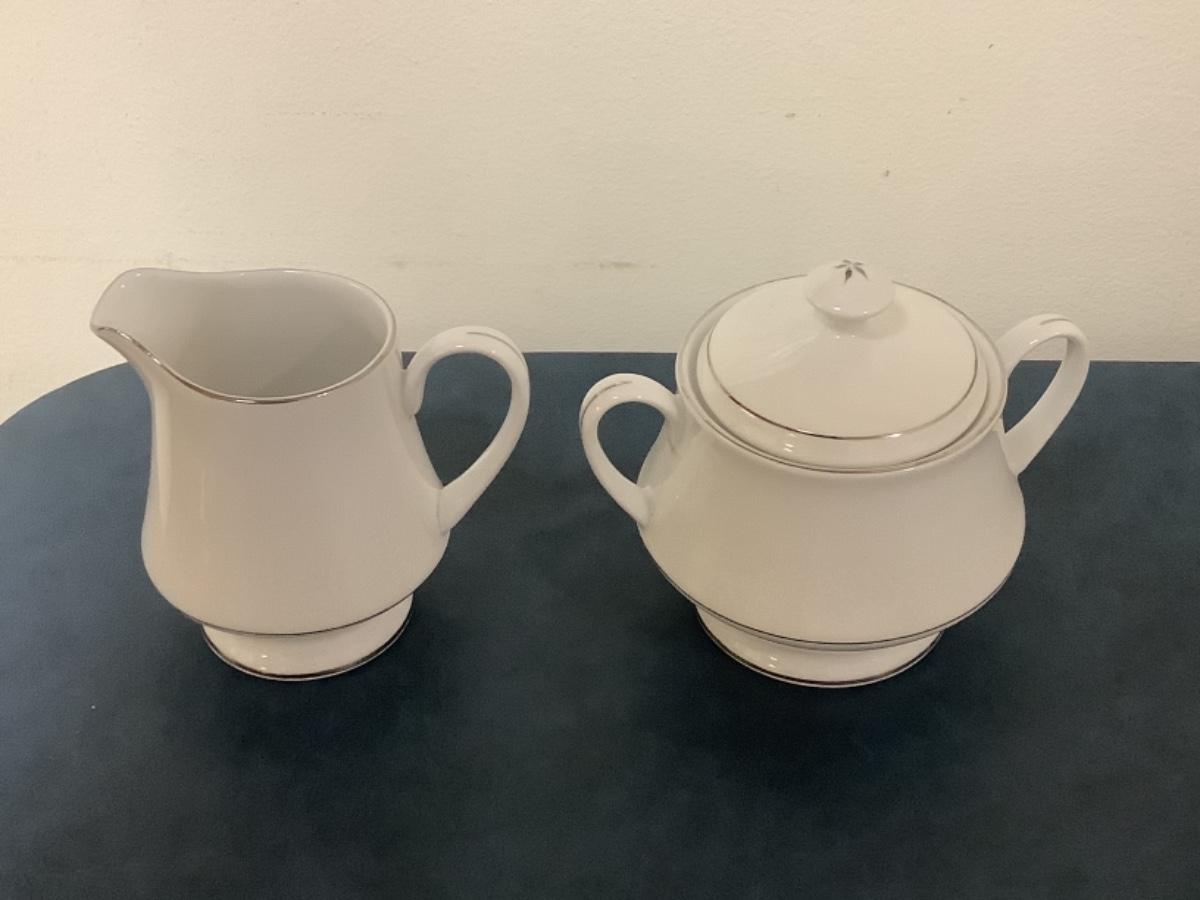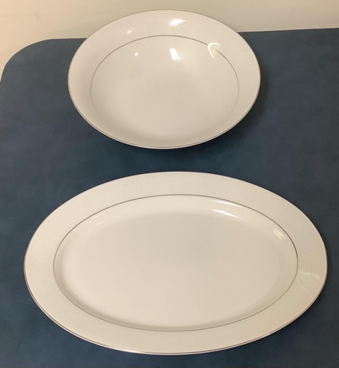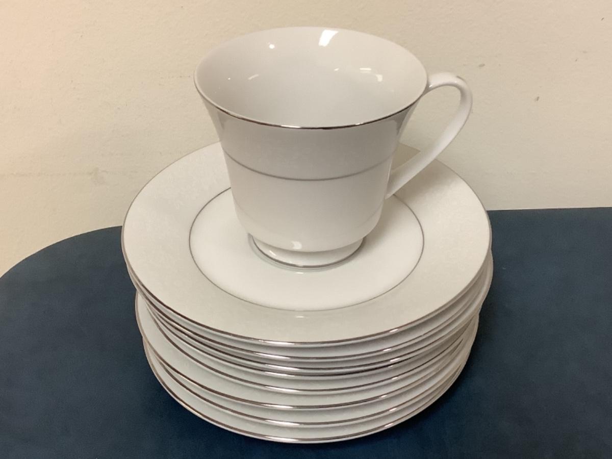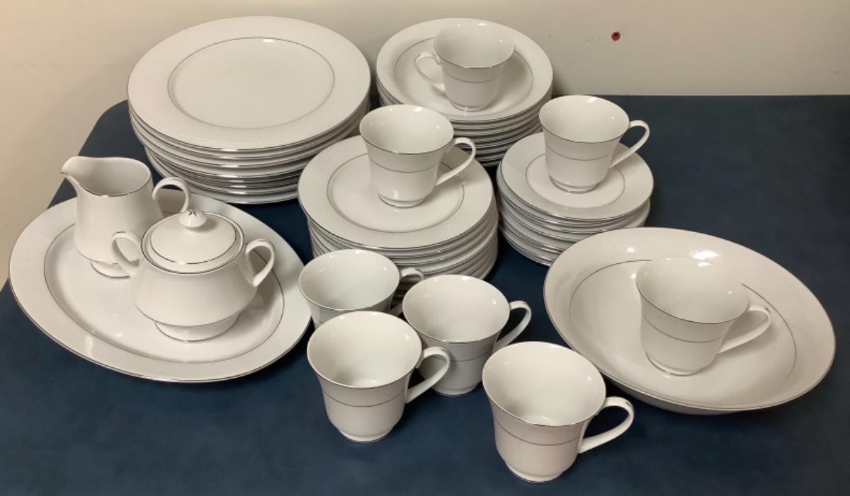 Set includes- 8- 10-1/2” dinner plates, 8 salad plates7-1/2”, 8 Bowls 8” round 1-1/2” high, 8 tea cups, 8 saucers, 1 round serving bowl 9” round 2-1/2” high, 1 Oval serving plate 12” long x 8-3/4” wide, 1 cream pourer and 1 sugar bowl