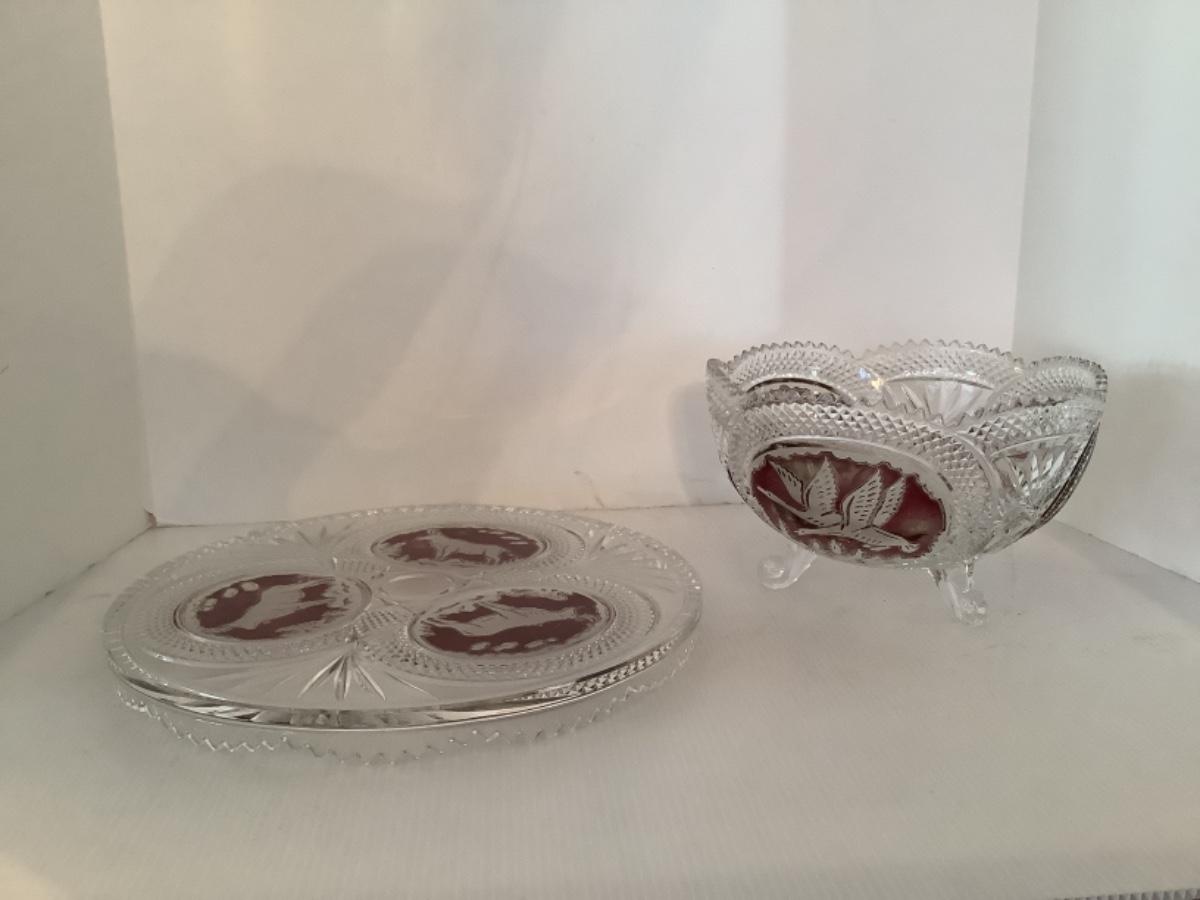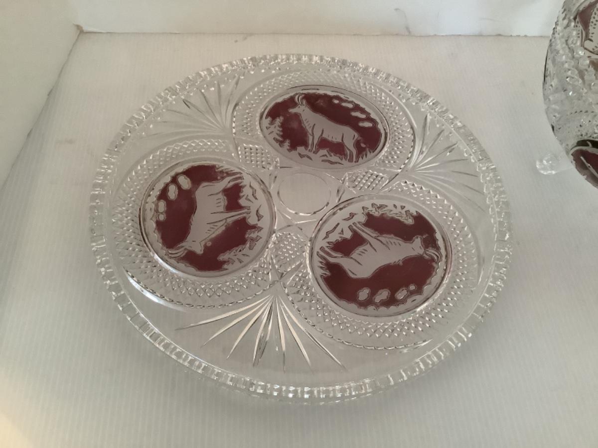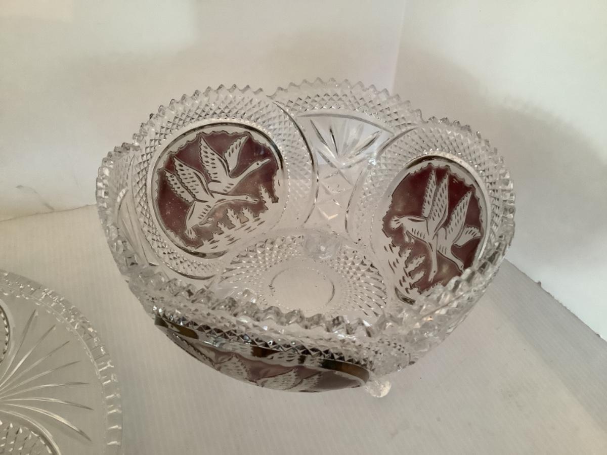 D619 Vintage German Glass Bowl with Stag and Waterfowl Bowl