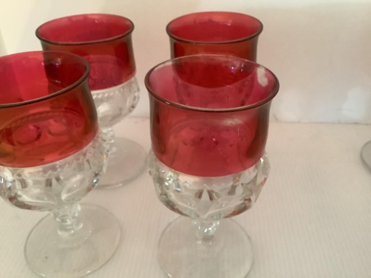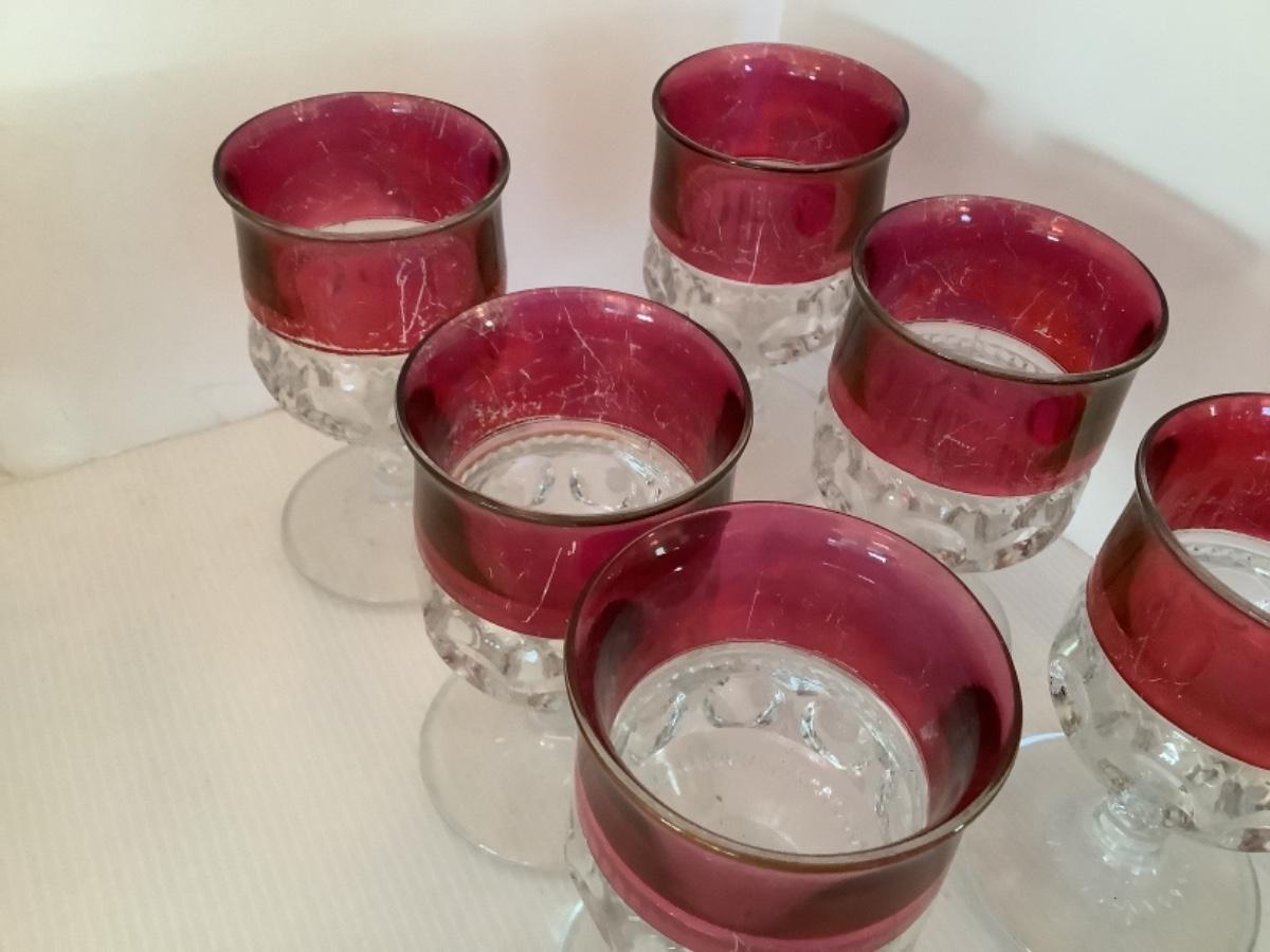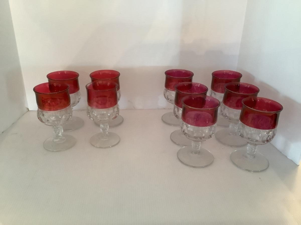 D620 Set of 10 Vintage Tiffin Ruby Flash Glass Thumbprint Goblets