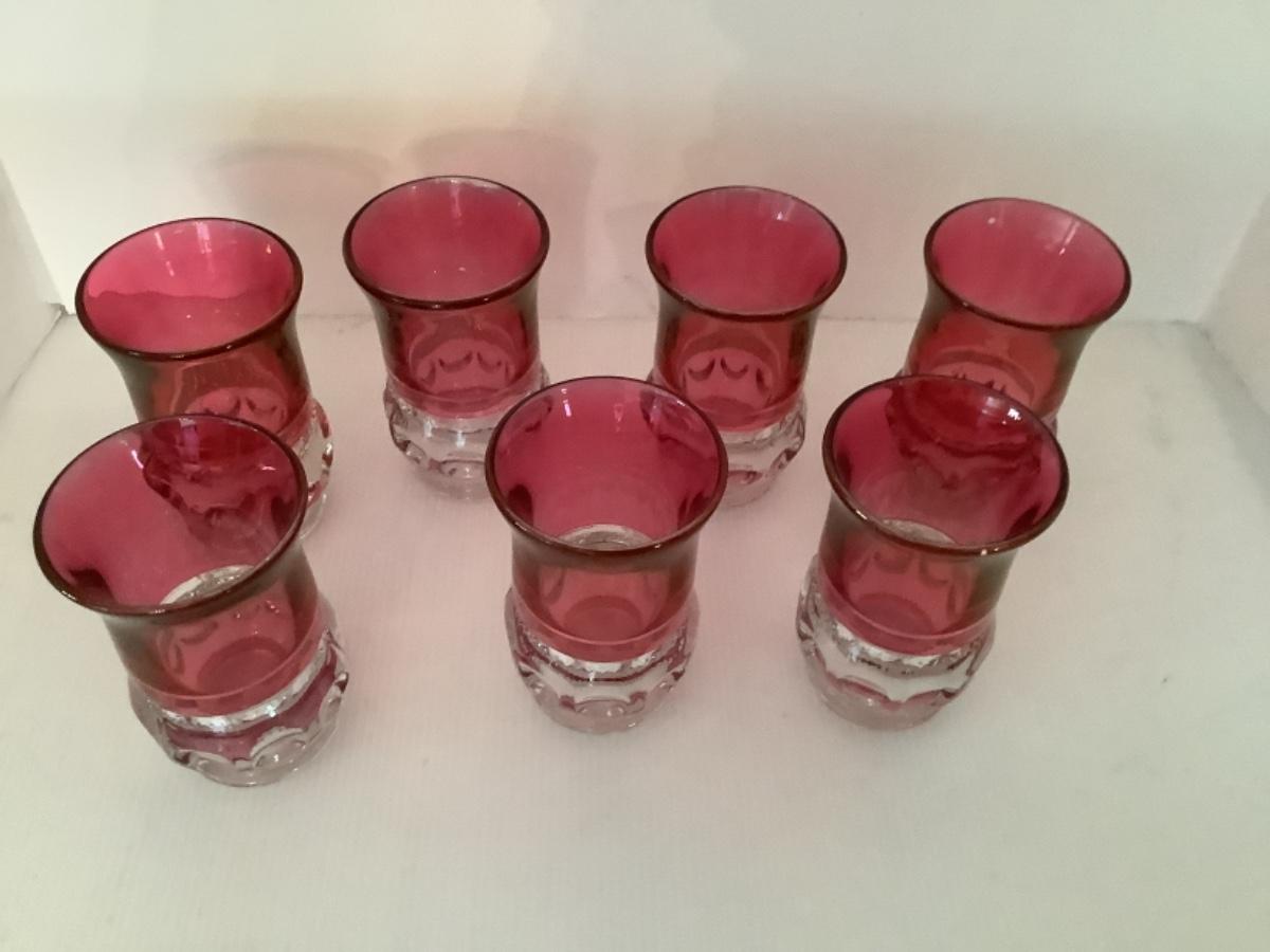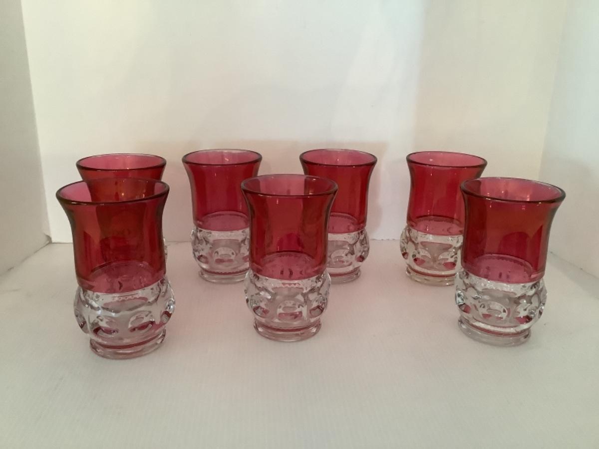 D621 Vintage Ruby Flash Glass Tiffin Thumbprint Water Ice tea Tumblers