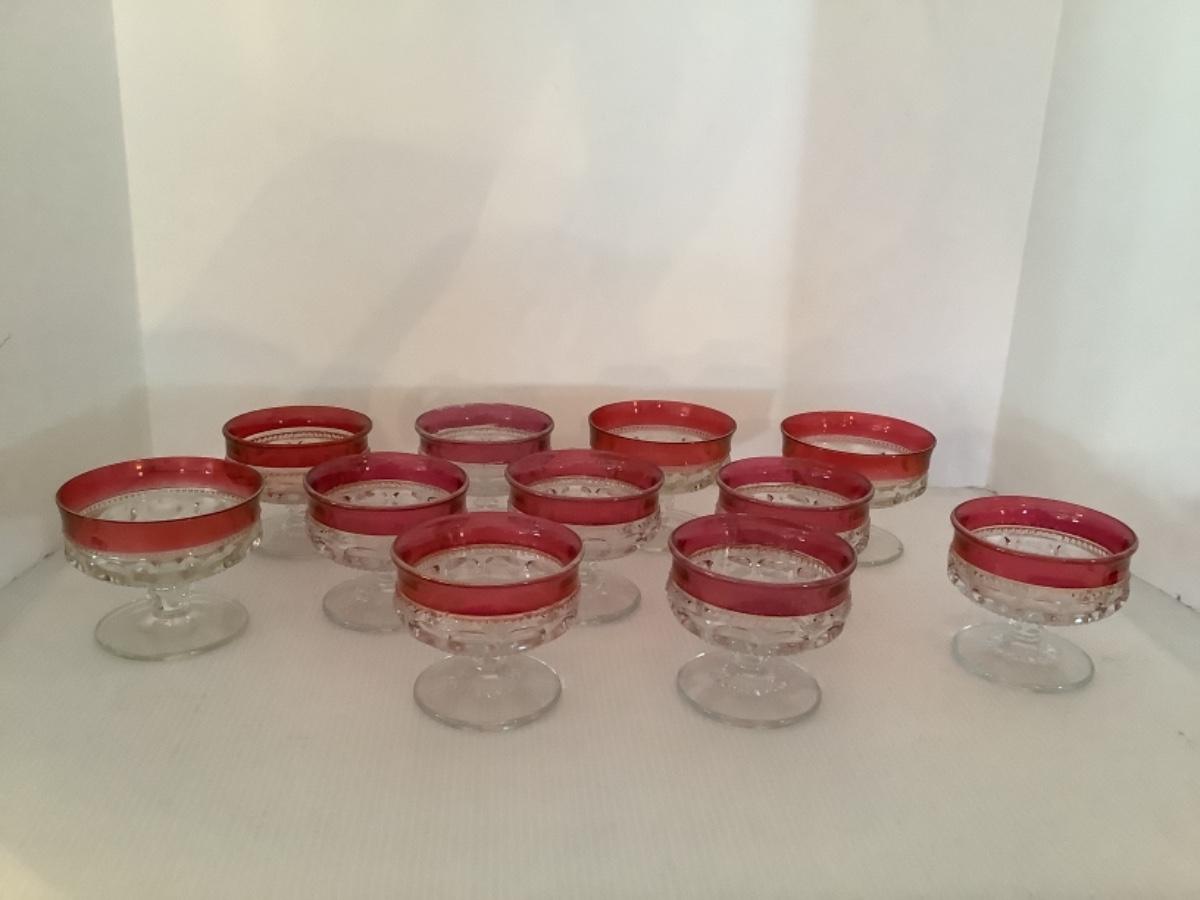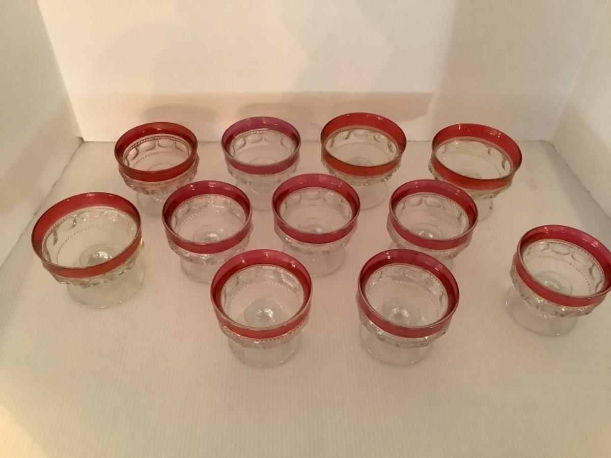 D623 Vintage Ruby Tiffin Flash Glass Thumbprint Sherbert Glasses