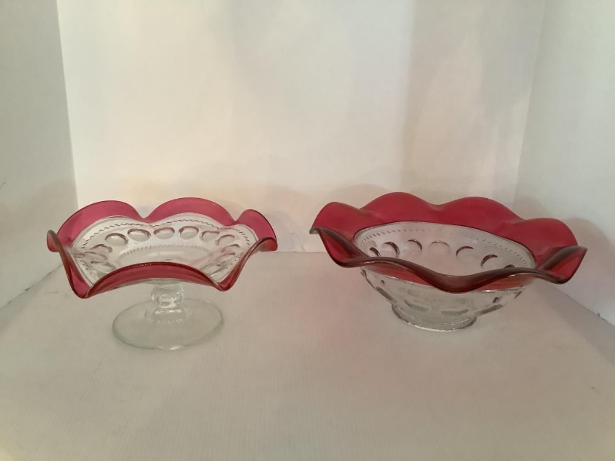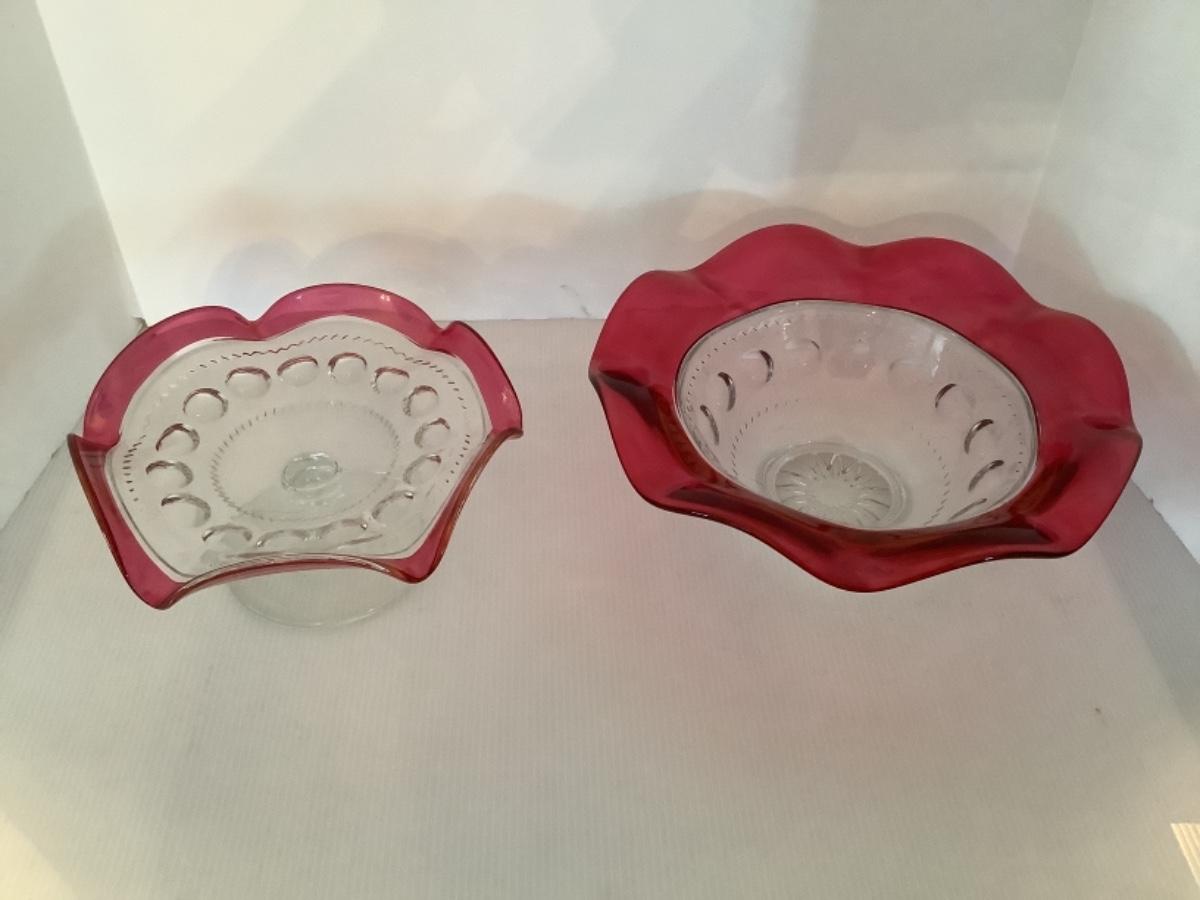 D624 Vintage Tiffin Ruby Flash Glass Pedestal Bowls