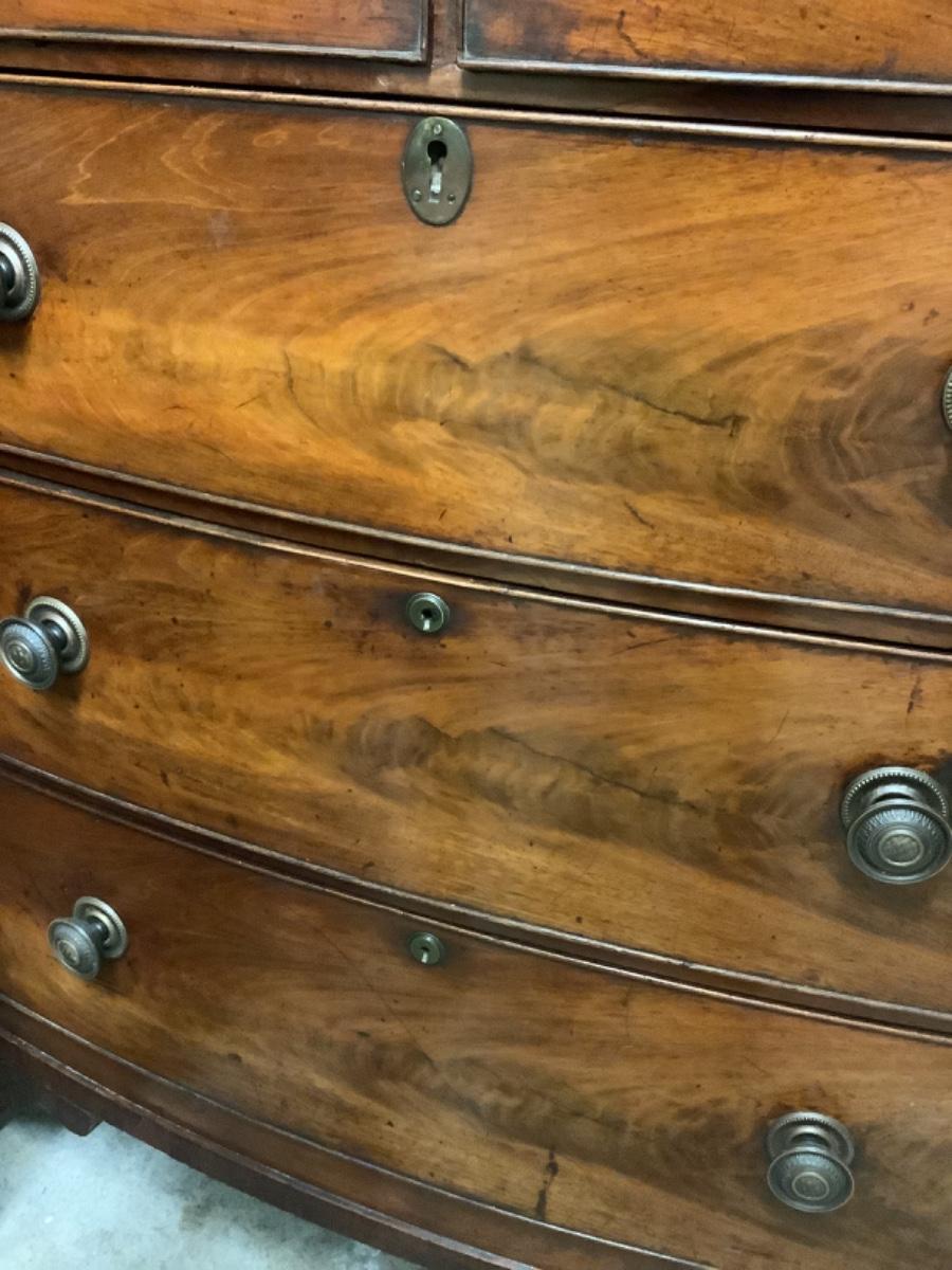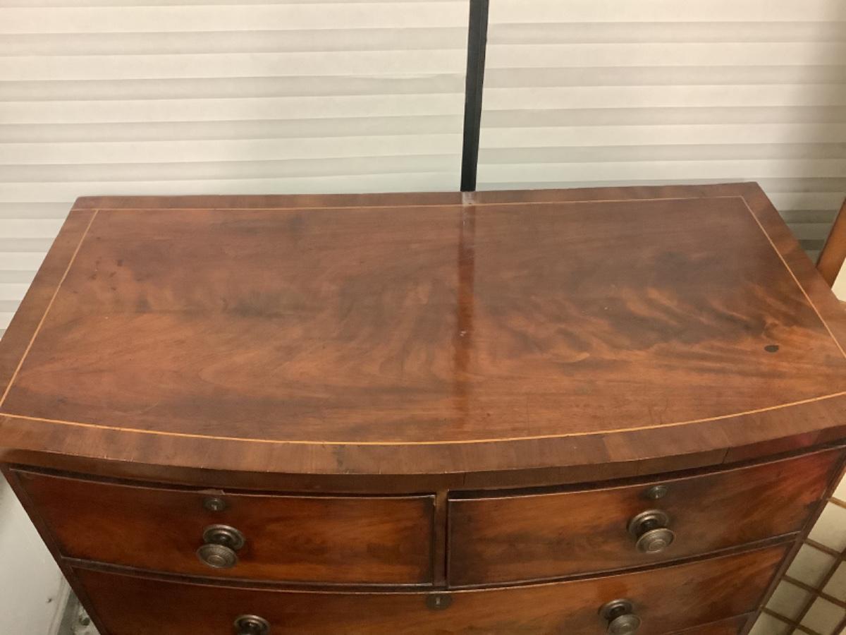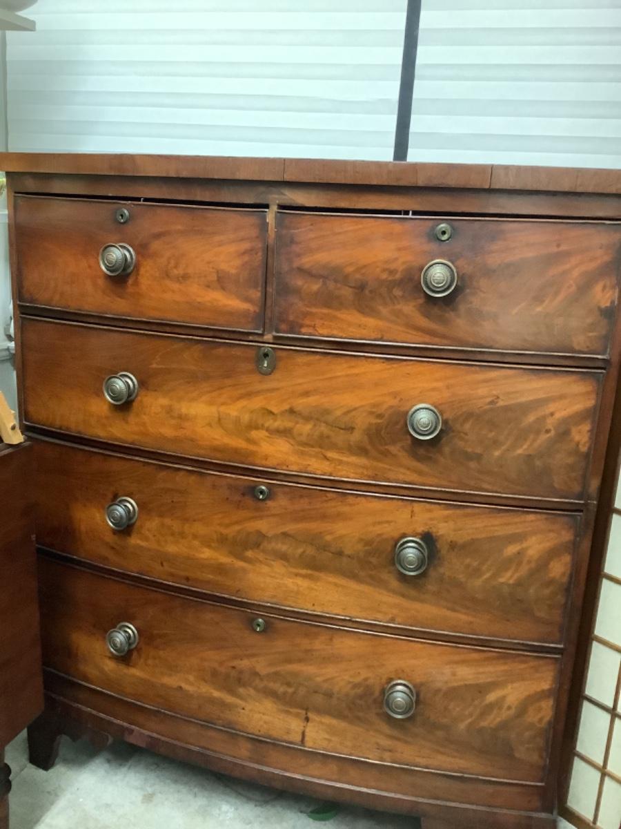 D643 Antique Bow Front Regency Style Mahogany Veneer Dresser