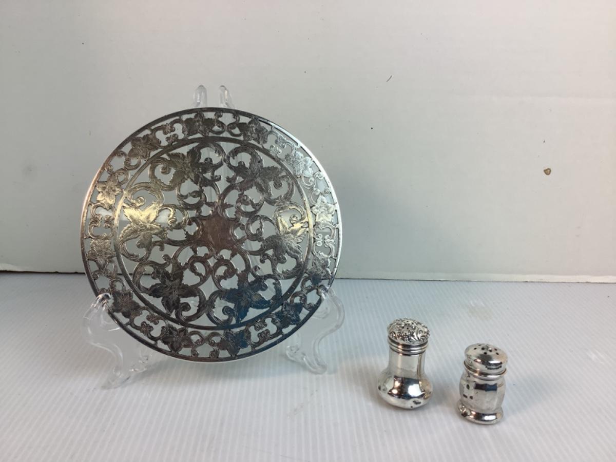 D645 Sterling Silver Coaster by Wallace and Two Salt Shakers