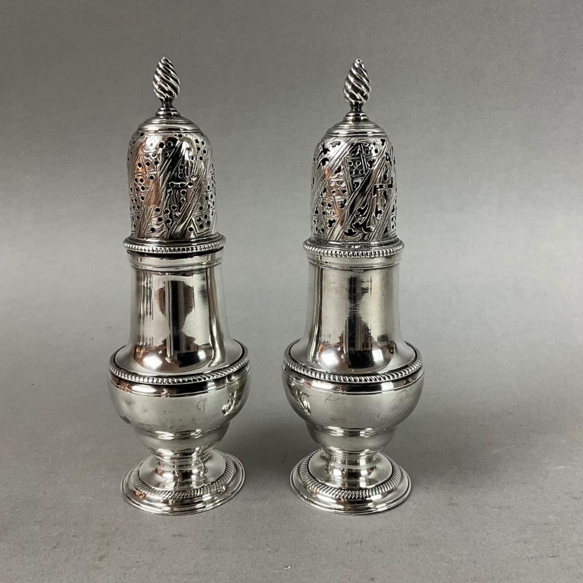D651 Antique 1760 English George II Sterling Salt & Pepper Shakers