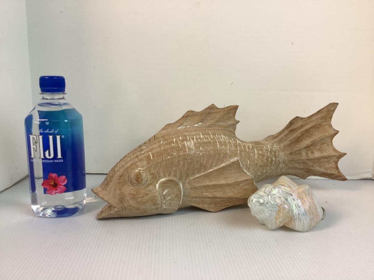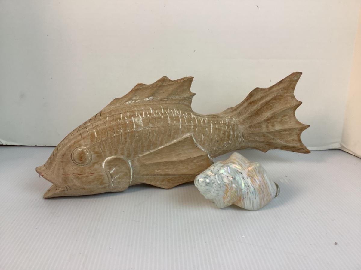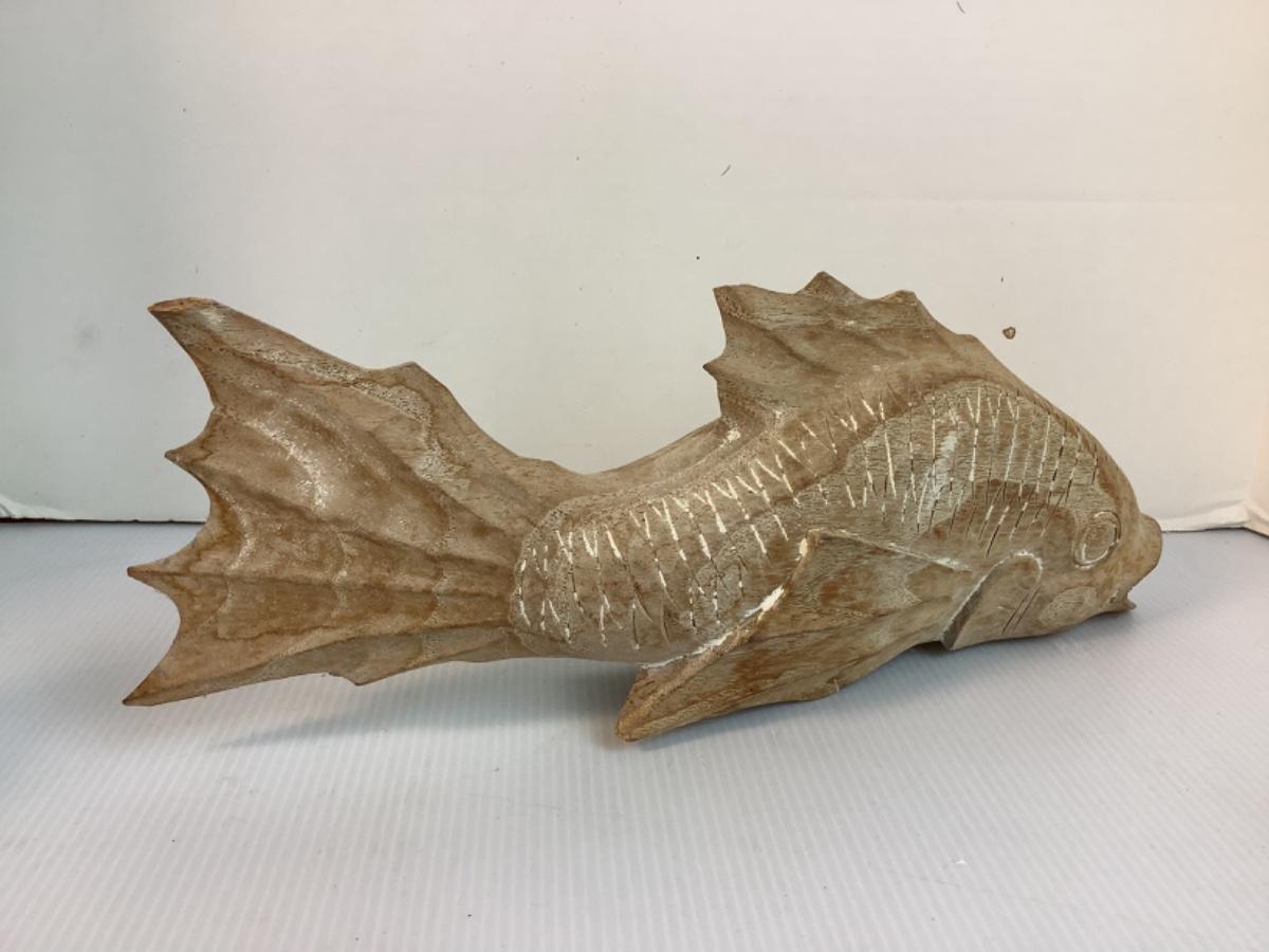 D665 Carved Wooden Koi Fish with Hand blown Glass Shell