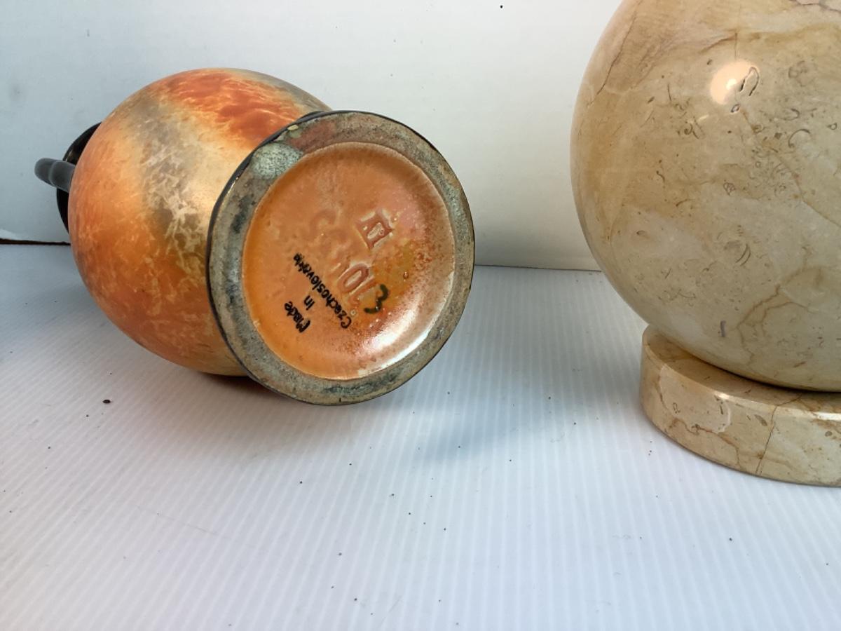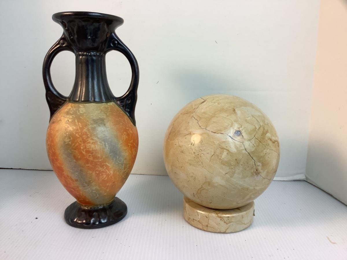 D674 Marble Sphere & Czechoslovakia Handled Vase