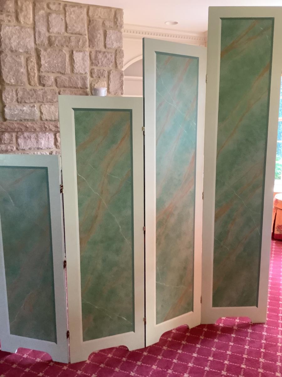 One side is hand painted with a faux marble scene