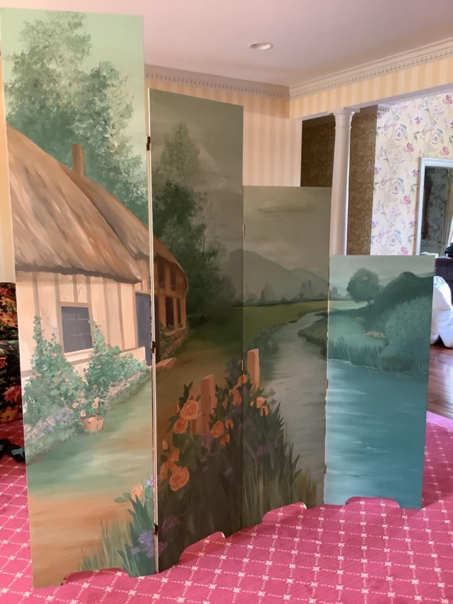D677 Hand painted 4 Panel Graduated Double sided Panel / Room Divider
