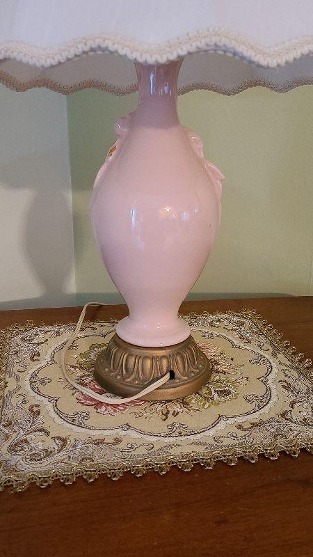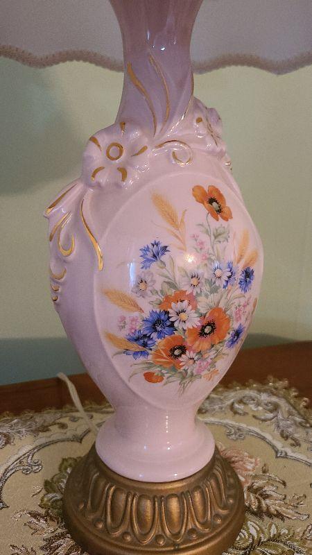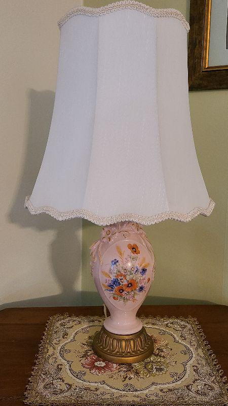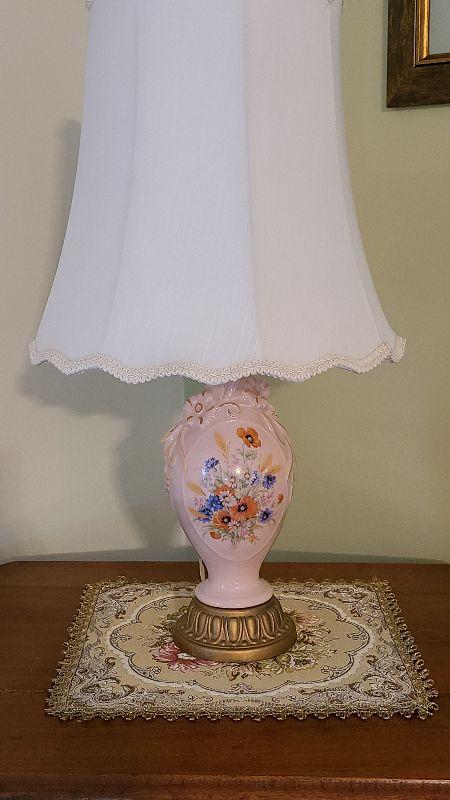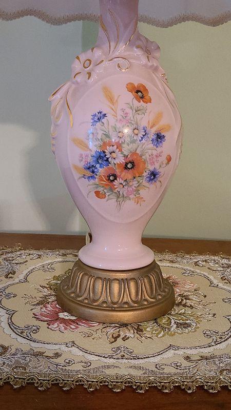 D68: Pink Floral Vintage Lamp & Tapestery