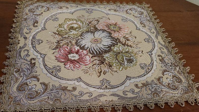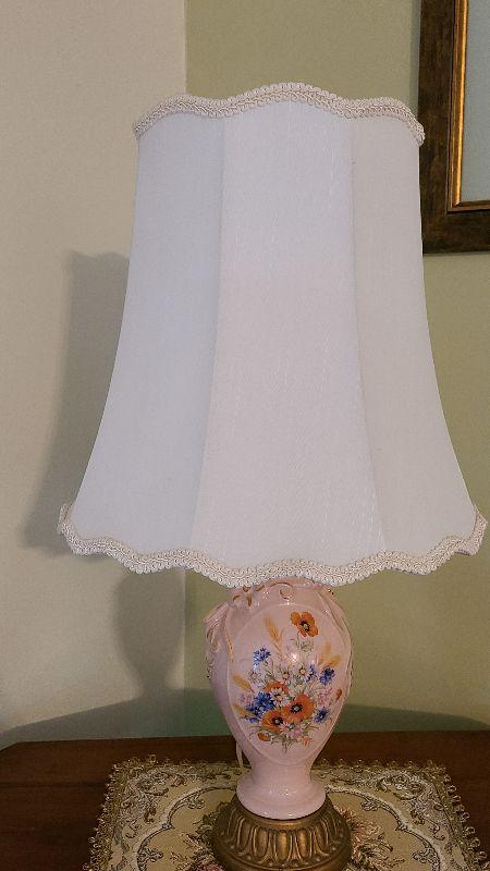 Lamp from 1951, No Makers Mark, Taperstry with Metal Golden Thread. Please review all photos. First photo shows all that is in the lot, unless otherwhise noted. All items sold AS IS-WHERE IS. Please bring help for larger lots, and boxes or bags to remove your lots.