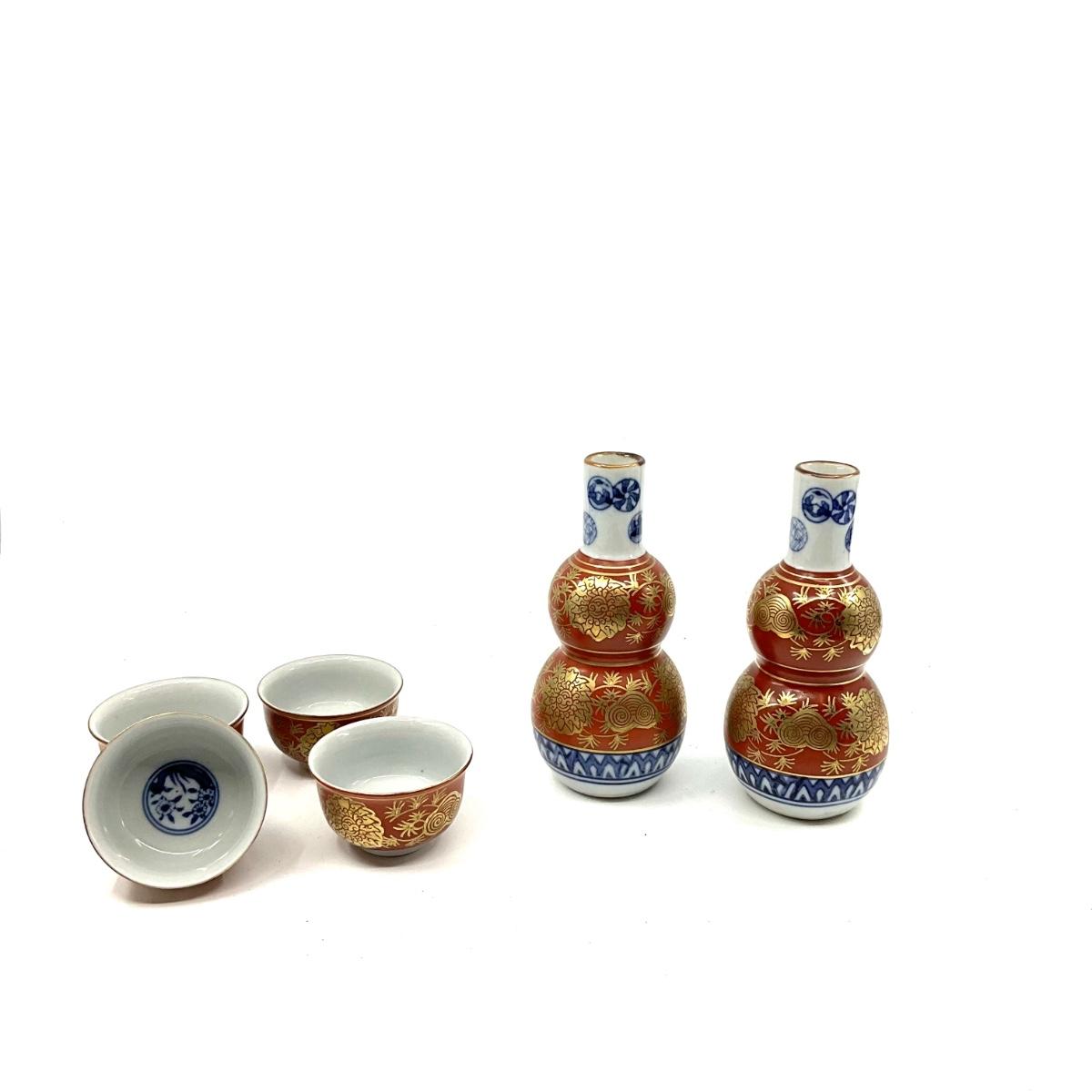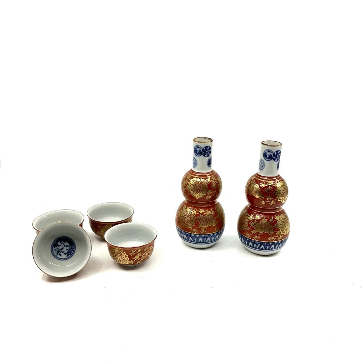 D681 Set of Signed Porcelain Saki Bottles and Cups