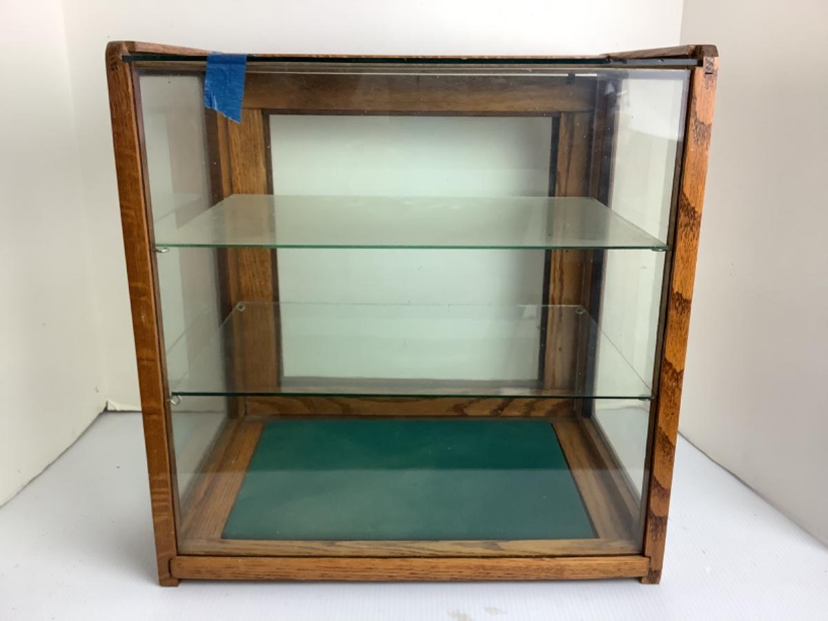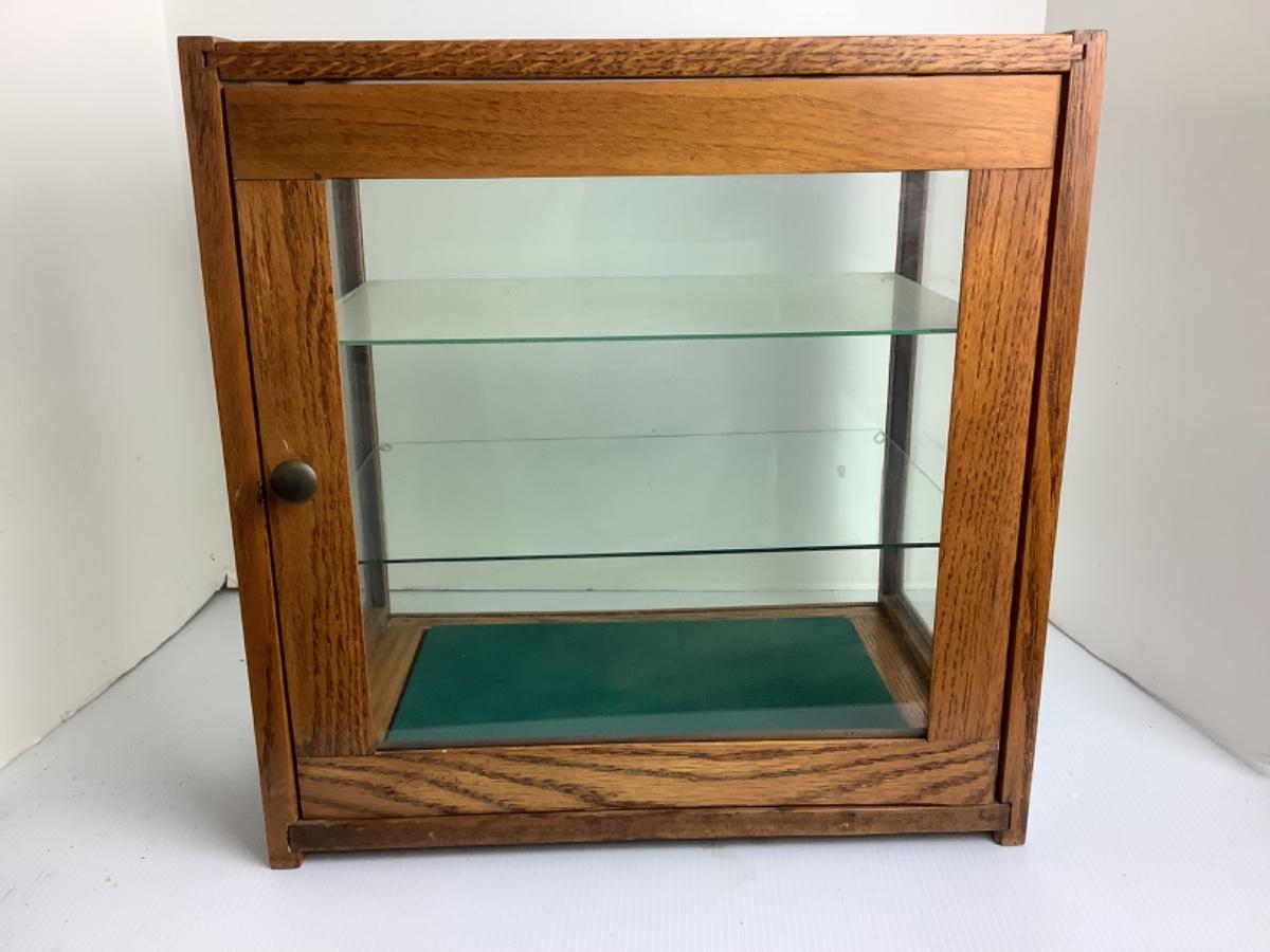 Oak Glass Showcase. 15”W x 10.5” D x 15.25”H